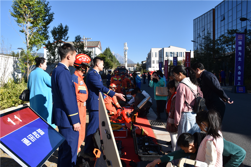启动仪式结束后,丽江市消防救援支队在现场设置了车辆器材装备展示区、消防产品科普区、主题书画摄影展示区,让市民从不同角度了解消防设备,学习消防知识,进一步提高大家的自救互救能力。