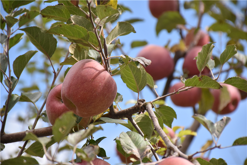 又到苹果飘香时,硕果累累挂满枝。眼下,古城区文化街道红水塘村的苹果迎来了丰收,连片的苹果树郁郁葱葱,一个个鲜红透亮饱满圆润的苹果挂满枝头,处处弥漫着香甜气息。