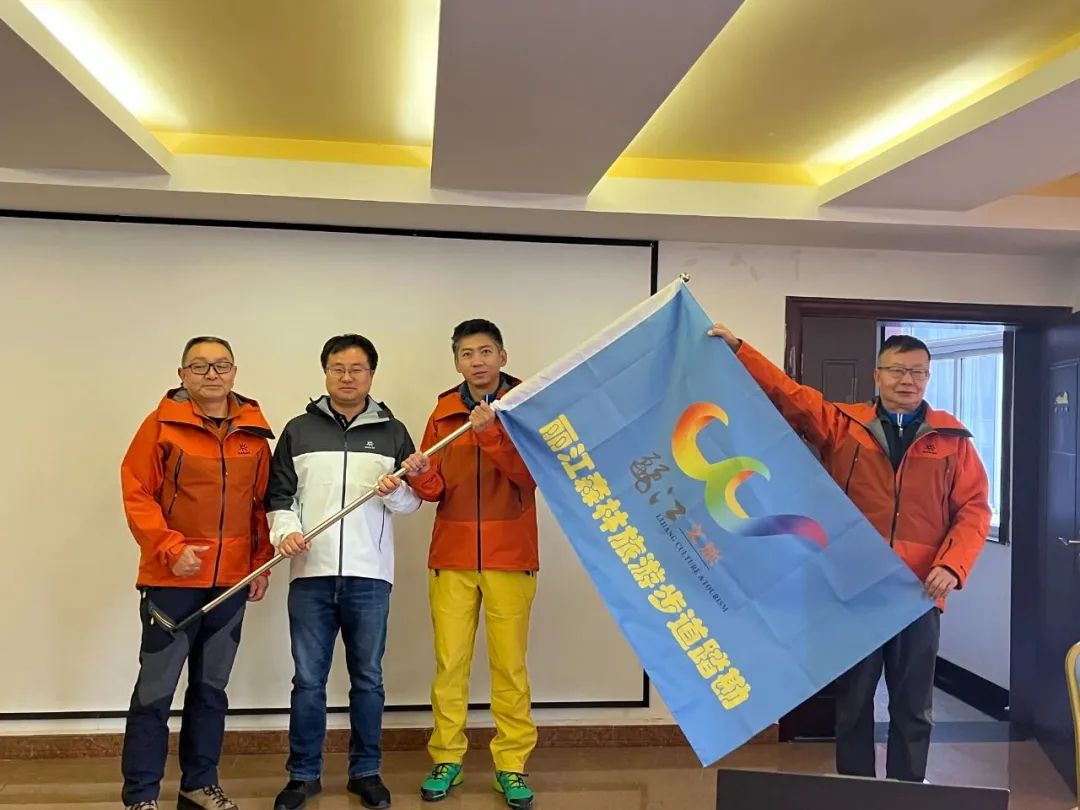 丽江市文化和旅游局副局长李学斌为踏勘队授旗。(丽江融媒记者 和世民 摄)
