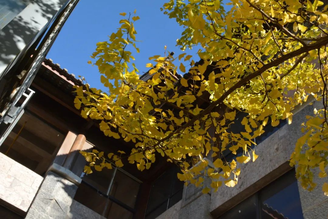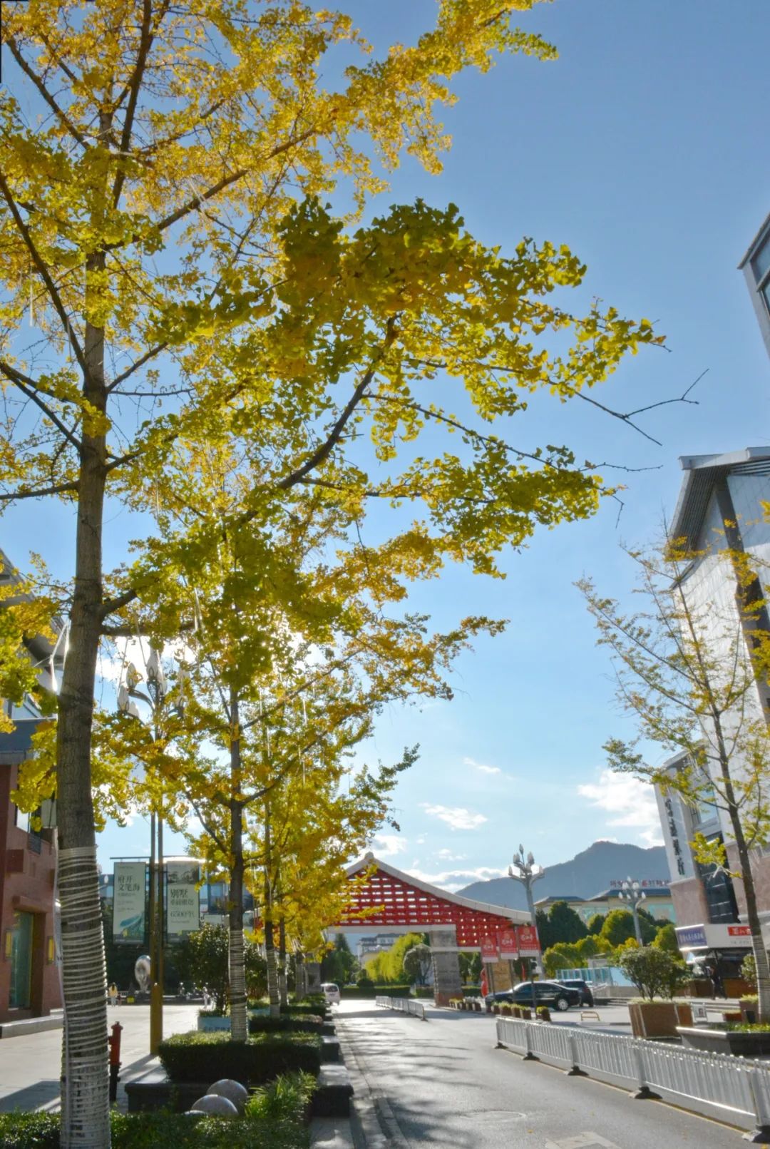 刚过立冬,凉意初生,初冬犹思晚秋意,现下正值赏杏好时节。11月的丽江,天空湛蓝如洗,深秋初冬的画卷正慢慢打开,阳光透过金黄的叶子洒落在地上,给人一种温暖宁静的感觉。如果你抬头望去,会看到银杏树的枝干交错,枝叶逐光而行,小扇般的叶子编织成一个金色的天幕,仿佛进入了金色国度。 每到深秋初冬的季节,在丽江随处可见的银杏树叶子便挂满了枝头,满树金灿灿,美得让人心动。随着季节的变化,大自然的画笔轻轻挥动,银杏树的叶子从青绿到金黄,或尽情舞动,或尽情绚烂,或尽情摇曳,为秋色增添一份俏皮和灵动,成为丽江一道亮丽的风景线。 又是一年叶黄时,从来银杏不负秋。秋天的银杏叶似在低语,诉说着时光的流转。我接住一片没有被枝头挽留的银杏叶托在掌心,看它叶片金黄,脉络清晰,却不复春日的青绿,叶柄干巴巴的,仿佛是美人迟暮,羞于见人,不愿逗留在枝头。尽管如此,也要在谢幕前用那一抹黄将秋色渲染到极致。 又是一年叶黄时,从来银杏不负秋。有位诗人说,“自古逢秋悲寂寥,我言秋日胜春朝。”秋天到底有多美?你去品,在风的低语中,在叶的呢喃里……看着青黄交接的银杏叶子,透过午后温柔的光影,眼睛看见了,耳朵听见了。“何夜无月,何处无秋”,只是有时候我们走得太快,忽略了太多风景。就如那忽然一阵的秋风,邀请杏叶在阳光下漫舞,旋转,跳跃,然后打个卷,轻飘飘地落到地上…… 又是一年叶黄时,从来银杏不负秋。我想了很久关于深秋的文案,都不抵满地银杏叶来得直白。有人说,世人不知西陆远,唯有银杏不负秋。是呀,银杏经历了酷暑严冬,在春天作准备,在秋天悄然惊艳,所有的美好都会如约而至。亦有人云,人间满目是清欢,唯有银杏不负秋。是呀,人生处处如行路,磕绊常有,只管努力,其他的交给时间。 银杏,是中国人的菩提,是有秉性、有慧根的树。我们常常能在寺庙中看见银杏。它们居于寺,听暮鼓晨钟的偈语,做香火佛灯的常客,仿佛受佛荫庇佑,带着皈依的禅意。在丽江指云寺就有两棵参天的银杏树,十一月份,正是它最美的时候。不如我们相约到指云寺赏寺院银杏,看杏叶飞黄,体会微妙的禅意,抓住深秋初冬赏杏的尾巴。