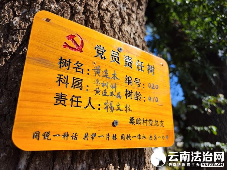 为加强对古树的保护,桑岭村党总支建立了党员责任古树挂牌管护制度,全村72名党员对村内171棵包括滇朴、黄连木、流苏等在内的珍贵古木实行挂牌管理,并给古树挂上“党员责任树”的牌子,详细标注树名、树龄以及责任人。