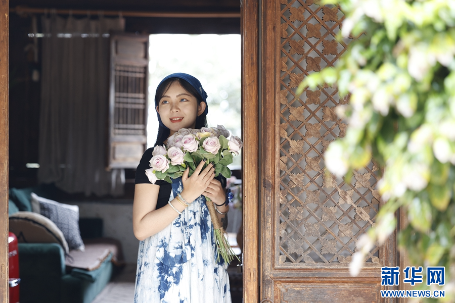 游客在有风小院内拍照(摄于9月19日)。新华网 赵普凡 摄