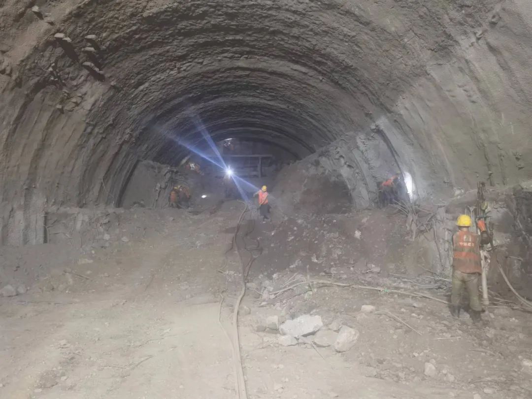 近日,记者在华丽高速东马场1号隧道看到的初支超前管棚施工。(丽江融媒记者 何世辉 摄)
