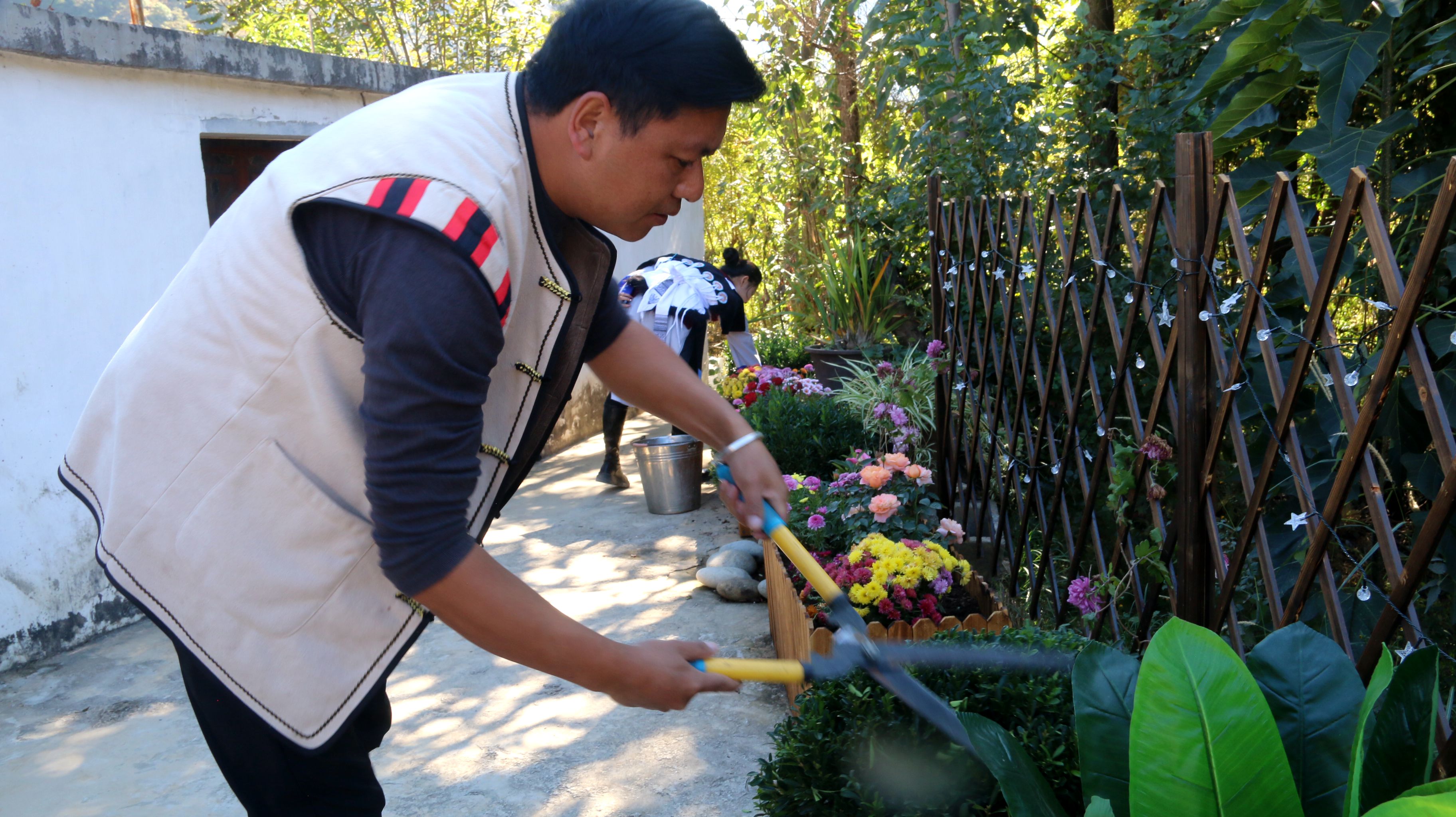 近年来,随着乡村旅游产业的发展,位于万里长江第一湾往北两公里处丽维公路沿线的石鼓镇大同一组,村民积极投入旅游产业,乡村旅游正在成为大同发展强劲的新型产业。为带动更多的农户发展乡村旅游,走好农文旅融合发展的道路,石鼓镇以“小家美”促“乡村美”,进一步提升乡村振兴试点示范村大同一组的环境质量,推进绿美乡村提档升级,在大同一组开展以奖代补的方式,鼓励农户自行在房前屋后、村道两旁规范种植花卉,并按照平方标准进行奖补。自方案实施以来,大同一组三季有花、四季常绿,玫瑰、富贵红、玛格丽特等花卉扮靓乡村。