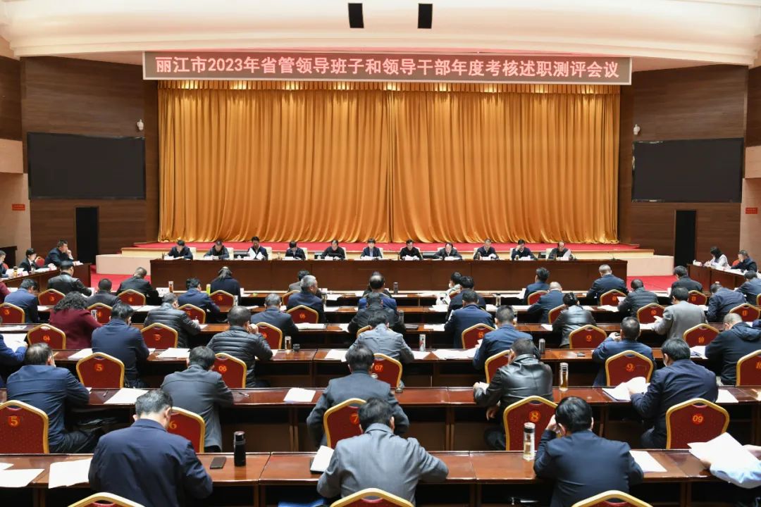 丽江市2023年省管领导班子和领导干部年度考核述职测评会议召开。(丽江融媒记者 赵庆祖 摄)