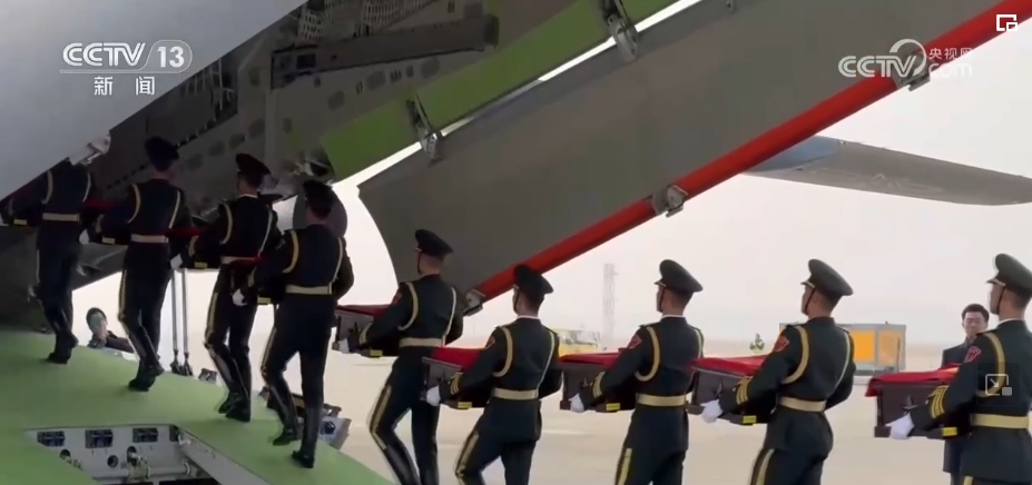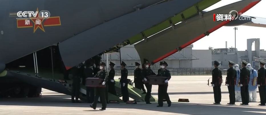 随后,中方礼兵护送棺椁走上中国空军运-20运输机。北京时间11月23日上午,运-20运输机从仁川国际机场起飞。