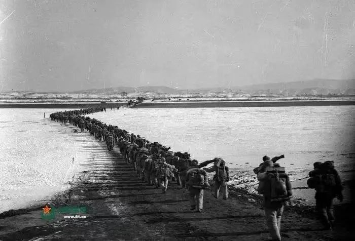 1950年冬,中国人民志愿军跨过鸭绿江。图片来源:中国军网