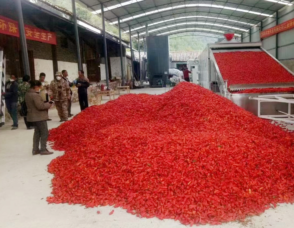“我们的成品辣椒烘干以后直接送往昆明公司,深加工以后直接卖给云南白药,每天要在这里烘烤15至18吨的工业辣椒,日烘烤时长13个小时左右,每年8月底进入采收季。这次我们组织观摩会,主要是想激励更多农户加入工业辣椒种植的队伍中来。”丽江普宇飞腾农业科技发展有限公司负责人和晓宏表示。
