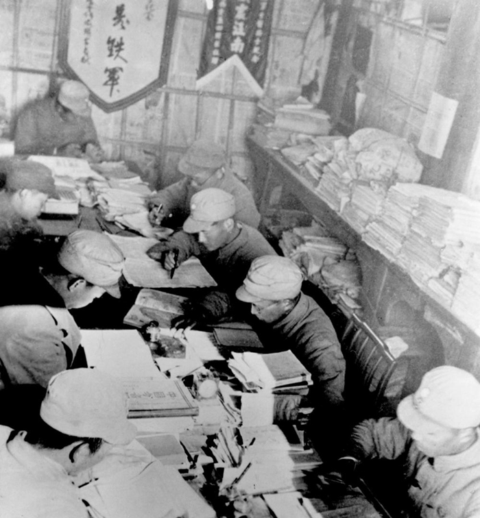 ↑ 抗日战争期间,新四军在苏北冰天雪地中行进。