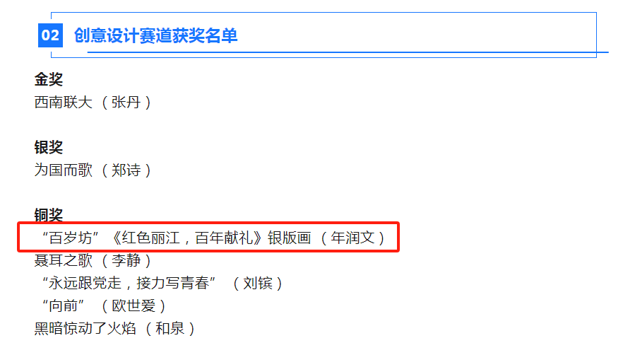 百岁坊作为云南老字号品牌,市级非物质文化遗产“纳西族传统银器制作技艺传承基地”,此次《红色丽江 百年献礼》银版画作品荣获创意云南文化产业博览会(2022—2023)文创大赛创意设计赛道铜奖,是对品牌的激励也是鞭策。对传统文化的寻忆、传承、挖掘、创新,始终是百岁坊品牌传承传统制银技艺、弘扬银文化的初心与梦想。