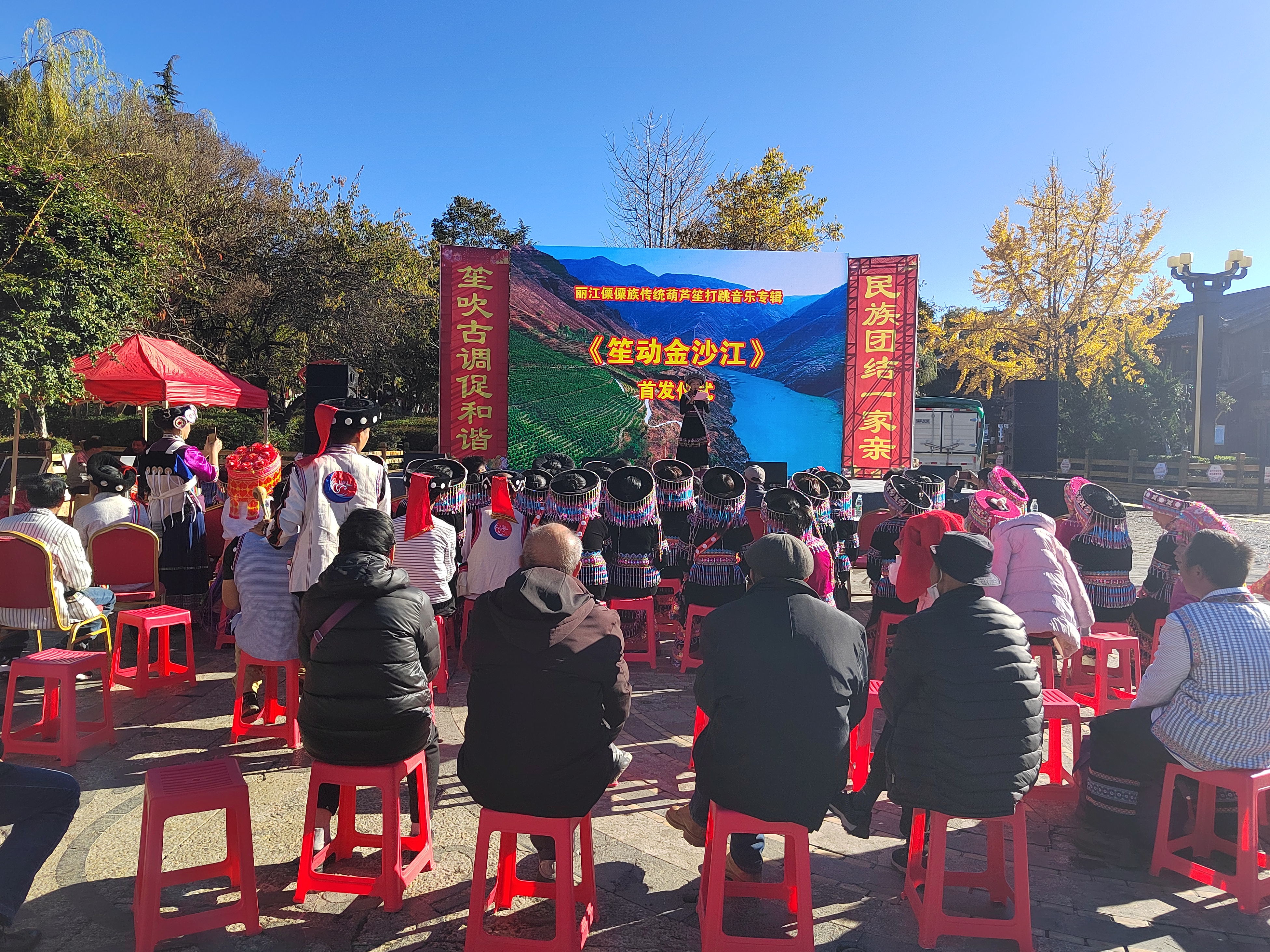 12月9日,丽江傈僳族传统打跳音乐专辑巜笙动金沙江》首发仪式在玉河广场举行。据了解,《笙动金沙江》由傈僳族民间艺人朱丽凡、朱学才、虎正华、虎文亮联合制作发行,专辑耗时两年多,收录了13首傈僳族传统葫芦笙古调。