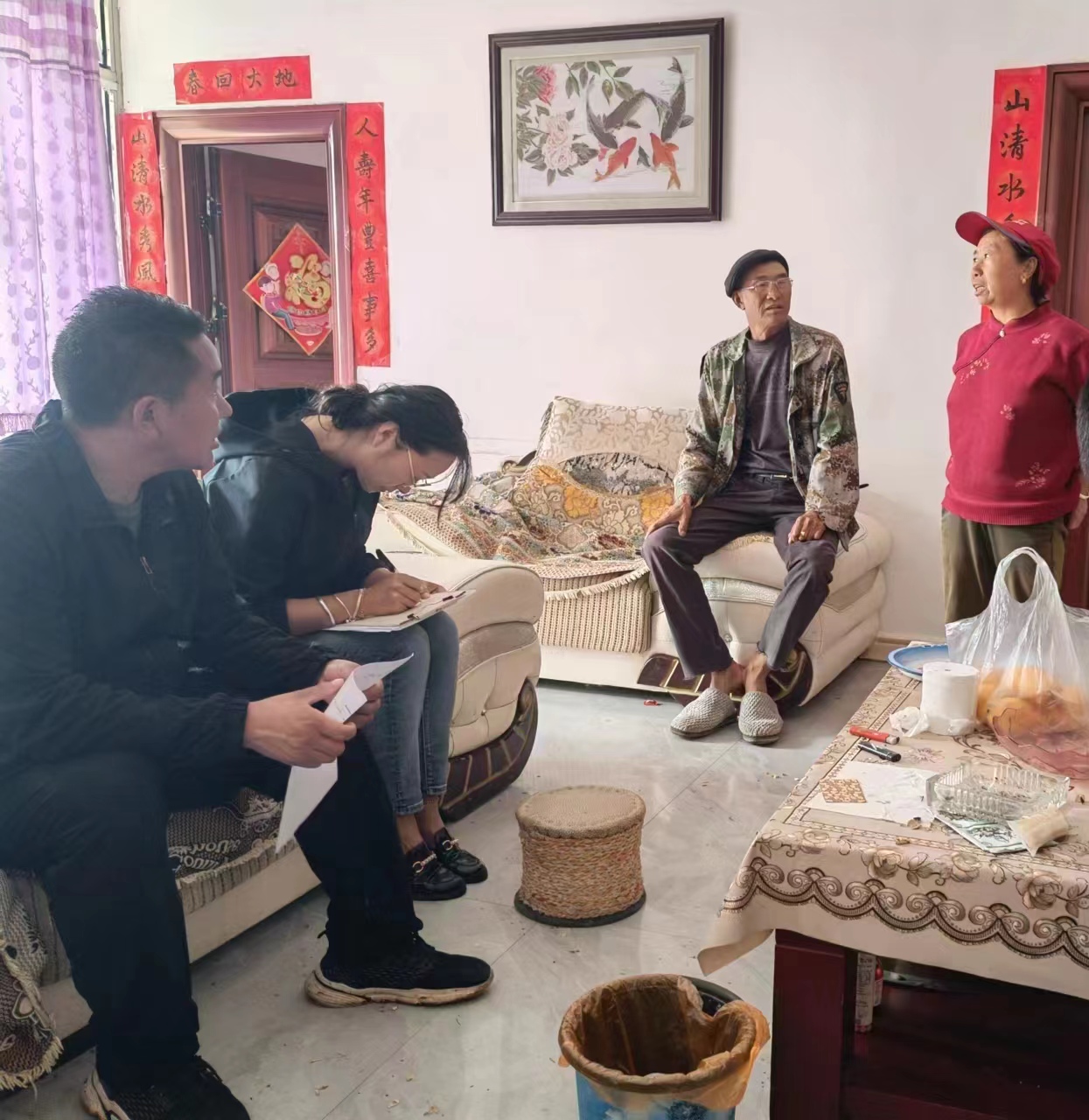 二是以敏锐的同理心,坚定人民立场。“些小吾曹州县吏,一枝一叶总关情。”,我生在农村、长在农村,参加工作后依然扎根农村,回到了家乡,走进了陌生的村村组组,努力成为为民解忧的“贴心人”、政策宣传的“讲解人”。翠玉村委会蔡家坪村小组的李大哥家,是驻村两年来带给我感触最深的一户人家。我第一次真真切切地体会到了“麻绳专挑细处断,厄运专找苦命人”的真实写照。李大哥2009年因从树上跌落导致脊椎粉碎性骨折,导致马尾神经坏死,能恢复行走,可是不能提重物,丧失基本劳动能力。整个家庭只能依靠其妻子在家里养殖、种植衍生收入,2022年1月厄运再次降临在这个家庭,其妻子确诊了左肺恶性肿瘤,纵隔淋巴结继发恶性肿瘤等七个部位恶心肿瘤,于7月份病故,两个孩子都还处于教育阶段,而妻子姐姐家夫妻也因故逝世,留下的孩子中有两名孤儿也由他抚养,妻子的离世让这个本就不幸的家庭雪上加霜。在了解到他家情况后,我们积极与上级对接将其纳入了突发严重困难户,2022年1月为该户申请了县级、乡级临时救助,4月份为该户在义务教育阶段的两个孩子申请了低保。通过这件事情我更加坚定了只有站稳人民立场,站在人民群众的角度看问题、想事情,想群众之所想、急群众之所急、忧群众之所忧,把群众急难愁盼的问题挂心上,才能切实增强人民群众的获得感、安全感、幸福感。两年来,我始终秉持为民服务的宗旨,把群众的“琐事”当成自己牵挂的事,努力学习民族语言、认真倾听群众诉求、耐心解答群众问题,对群众反映的低保、特困、临时救助等问题一个一个的处理,一步一个脚印,在自身获得成就感、满足感、自豪感的同时,也获得了群众的认可。