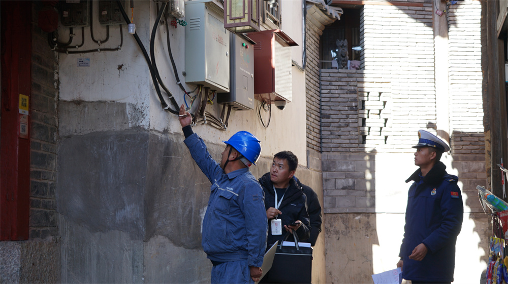 检查中,各单位工作人员对古城内可能出现的超合同容量用电、私拉乱接、未配置漏电保护器、违法转供电、违约用电、电气线路敷不规范等电气消防安全隐患逐一进行排查。