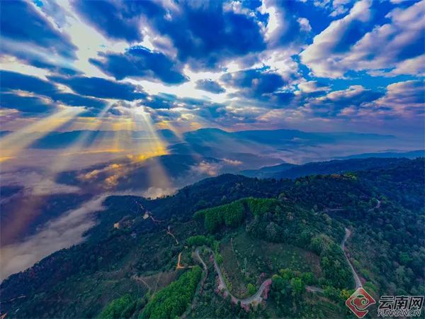 阳光从远山的褶皱中跃然而出