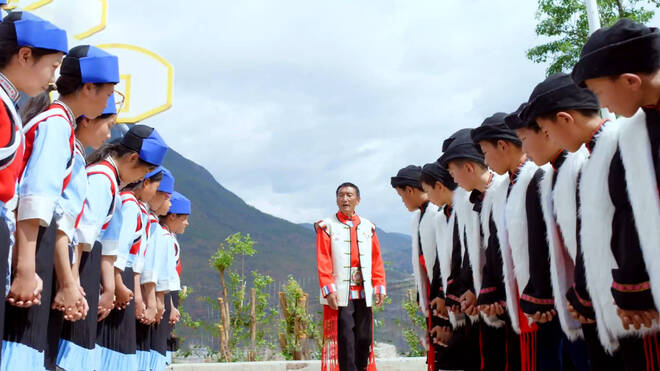 青山守护当地的人民,人们守望巍峨的群山;老者教授古拙的曲调,少年唱响稚嫩的童音。