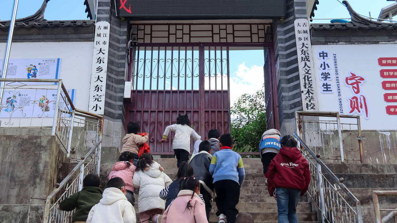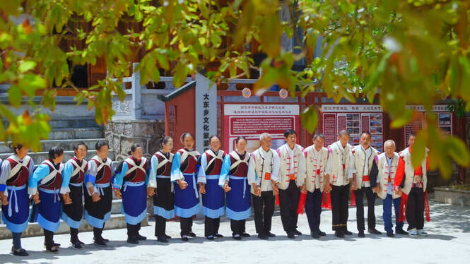 在大东完小,这里的孩子们从小耳濡目染了热美磋的曲调和唱腔,一进学校,就成为了学校热美磋队的“预备队员”。从一进学校跟在哥哥姐姐身后学唱学跳,到自己慢慢成为另一批弟弟妹妹的学习榜样,曾经只能依靠口口相传,以家庭为传承单位的热美磋也成为了学校里的特色课程。唱着纳西曲调的童声在大东的山林之间循环往复、生生不息。
