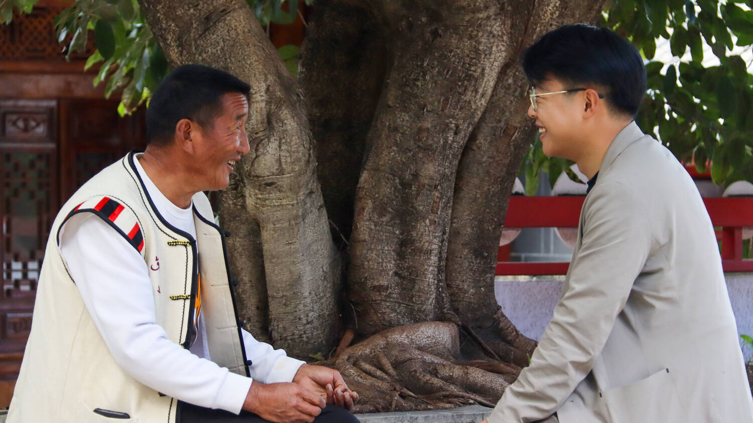 纳西人向来有着人与自然和谐相处的观念,在神话中,自然精灵“暑”是纳西人同根同源的兄弟,大东的人民被四周的群山环抱,也更能明白青山对这里人民的意义。于是,一代代村民自发成为了身周苍翠的“守山人”,用草鞋布履丈量大山的宽厚。