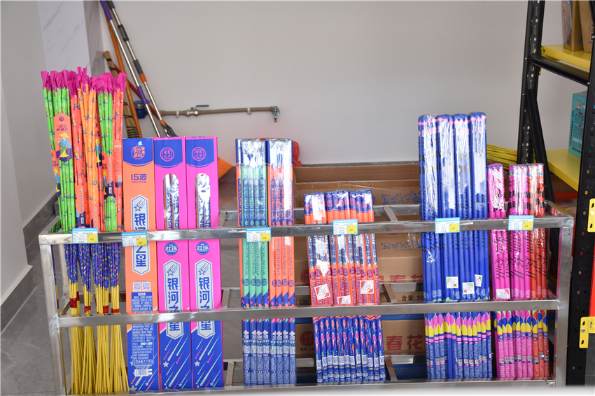 “我们公司目前有45个销售点,主要热销线香类、手持类、小型烟花类产品,因为这些产品燃放时间长、噪音小、效果好,所以小朋友和大人都比较喜欢。”丽江新安烟花爆竹连锁二分店店长黄红霞介绍说,“与往年相比,去年的烟花爆竹销售量是有明显上涨的,不同产品也更新了很多,价格几乎没有涨落,预计今年与去年持平。”