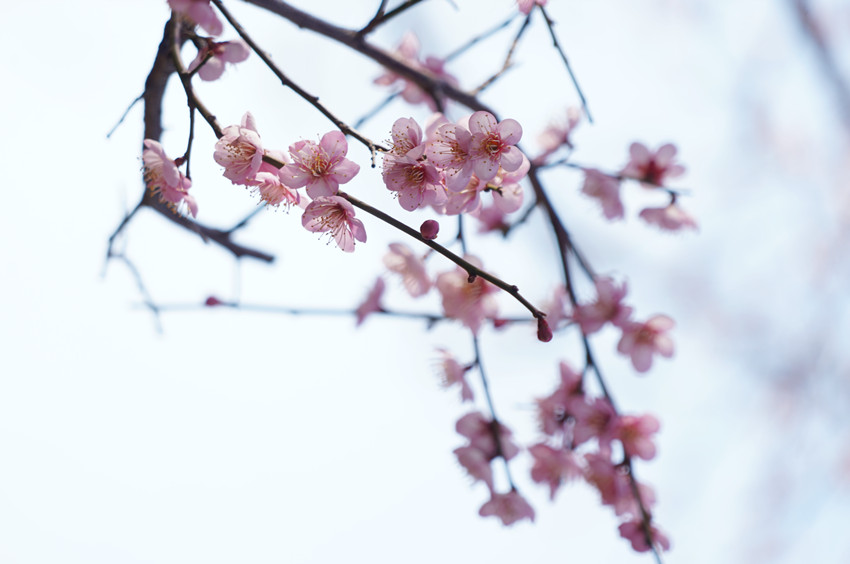每株梅是不同的。这里的梅,不似龚自珍《病梅馆记》所批判的“斫其正、删其密、锄且直”,而是任由他们竞发,于是,从树到枝,再到枝上点缀的花朵,各异的形态演化为千姿万态。而这份景色,无疑相映了苏东坡笔下咏梅的“寒心未肯随春态,酒晕无端上玉肌。”担心自己不合时宜,但又不肯随波逐流,始终高洁的品格。