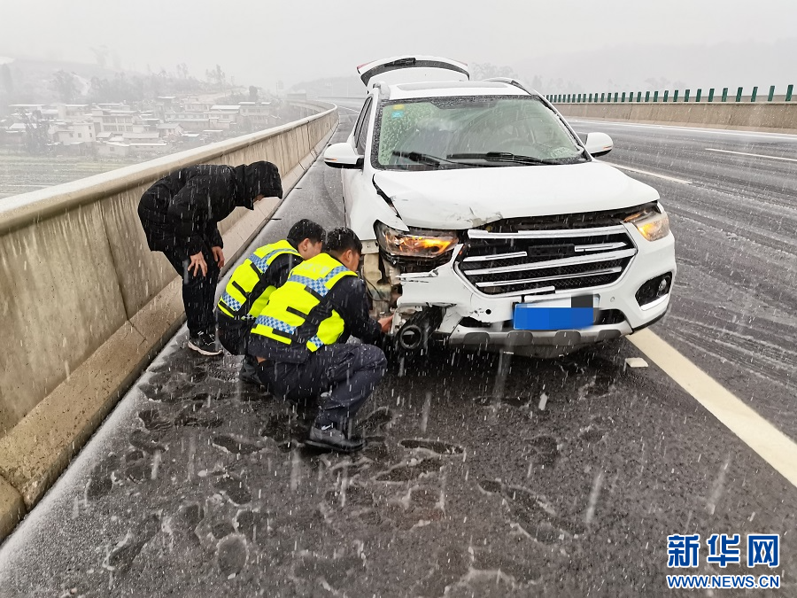 冒雨检查事故车辆(资料图)。新华网发(楚雄州公安局交警支队供图)