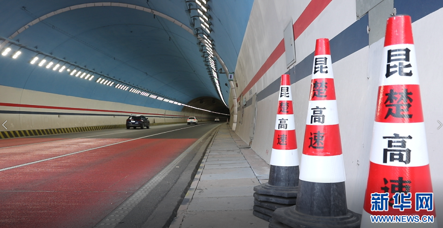 隧道内预留的锥桶(1月19日摄)。新华网发(楚雄州公安局交警支队供图)