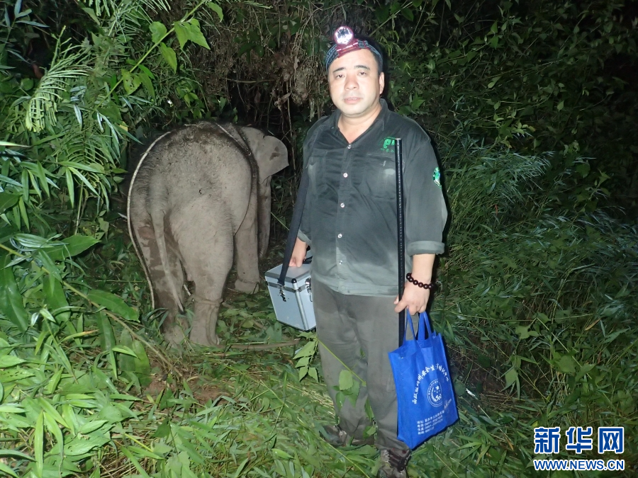“小强”救助现场,保明伟作为大象医生准备开始救助(资料图)。新华网发(西双版纳野象谷 供图)