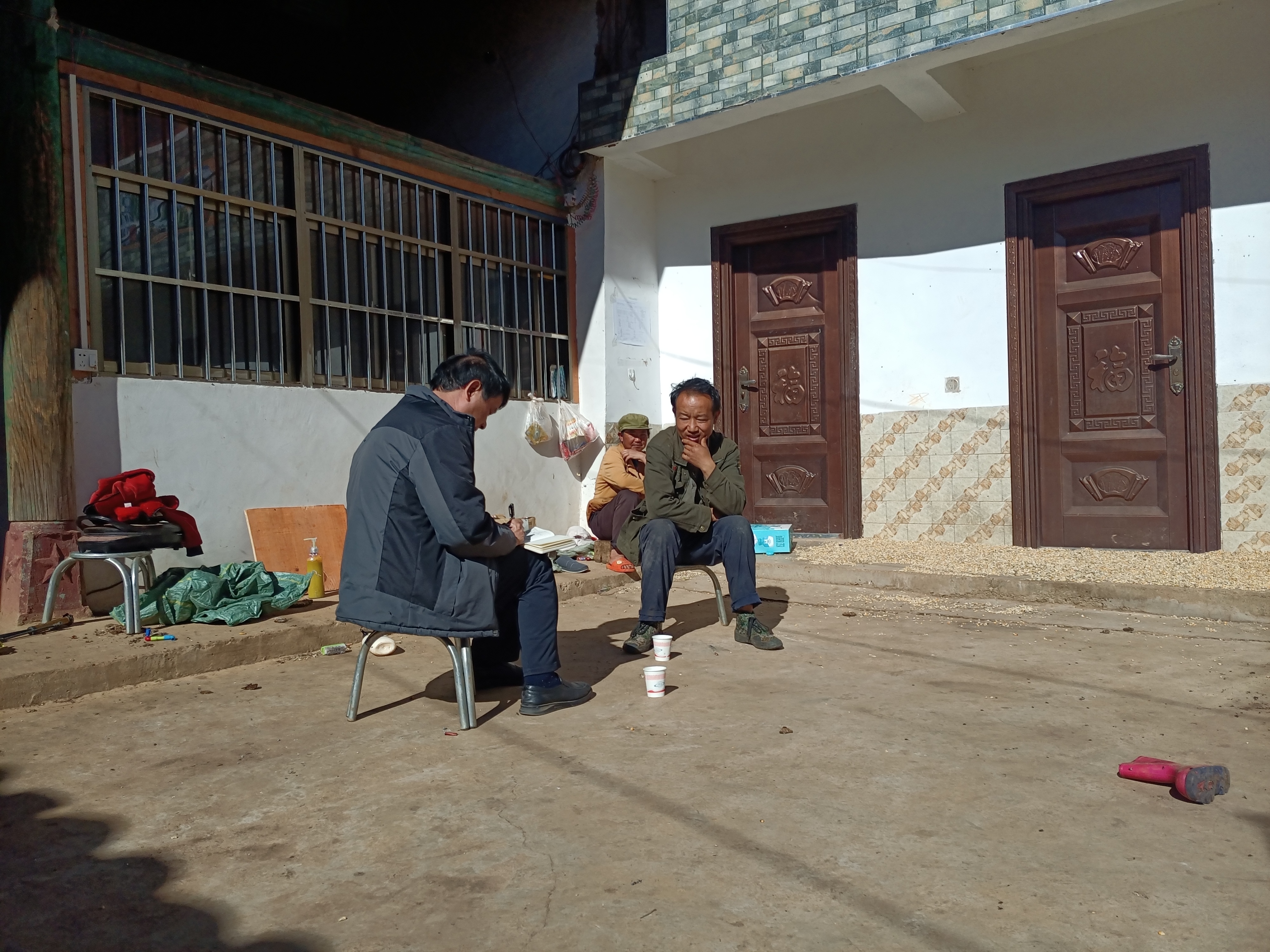 烟站人员向谷林学(右)了解2024年的种植计划。杨世祥 摄