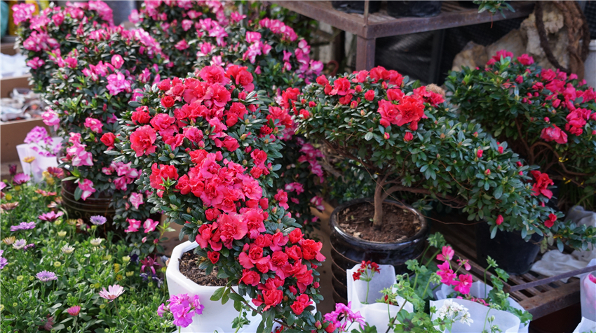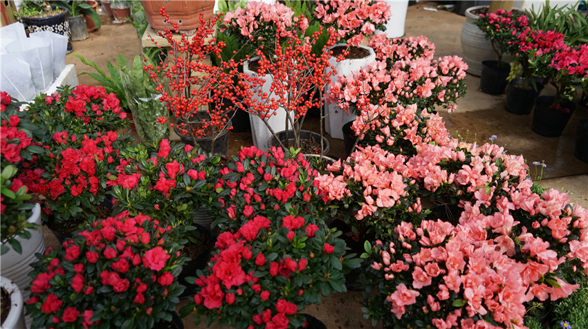 市民赵学菊说:“快过年了,我们每年都会买红色的杜鹃花、山茶花,寓意着红红火火,给新年讨一个好彩头。”