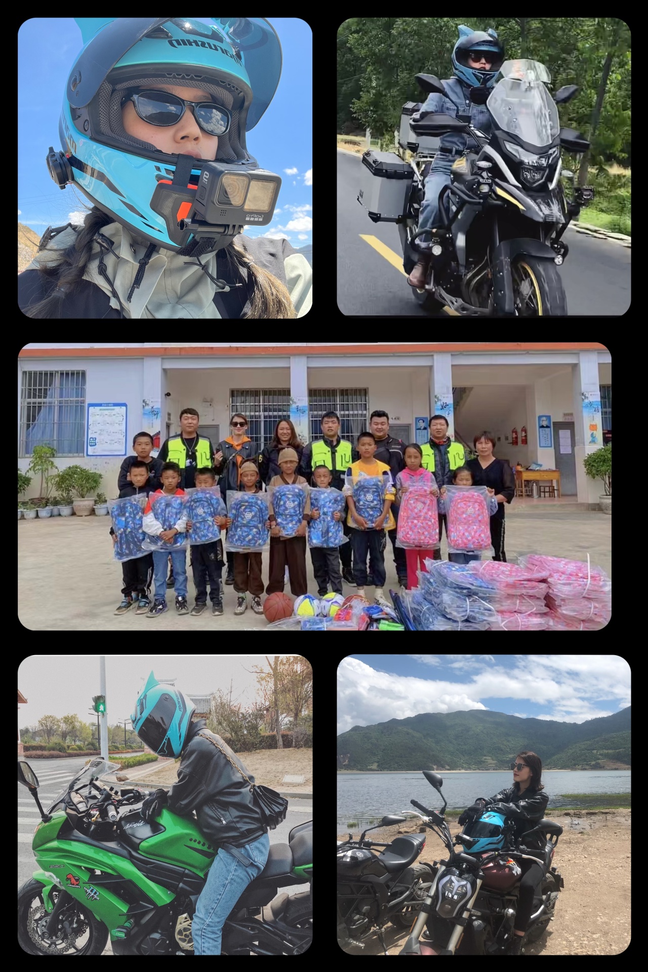 最让她骄傲的是,在享受骑行快乐的同时,和洁还跟着几个骑行好友一起自发组织购买物资去玉龙县鸣音太和完小、宁蒗金棉中心小学开展爱心捐赠公益活动。和洁说:“未来我还会让两轮承载着我的灵魂,吹着自由的风,一览祖国的大好河山,继续奔跑,感受风和自由的力量!”