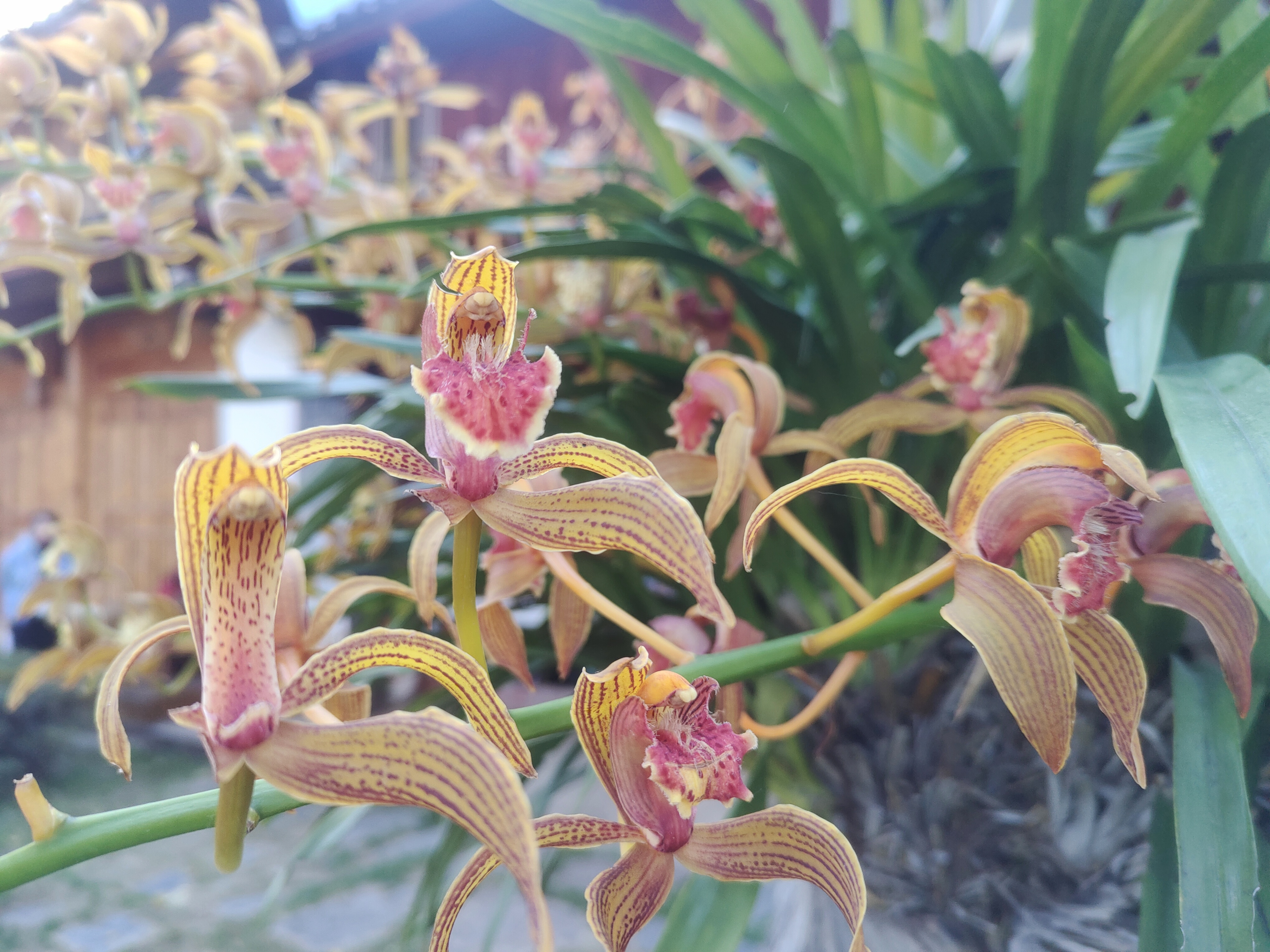 大花蕙兰的花语寓意为丰盛祥和,高贵雍容。它的花色多,花型也丰满,叶片都是比较翠绿的,看上去很精神,能给人一种典雅优美的气质,是一种好兆头的花卉。大花蕙兰是中国兰花的重要品种,外形美观,历史悠久,对中华文化的传承和传播具有重要意义。