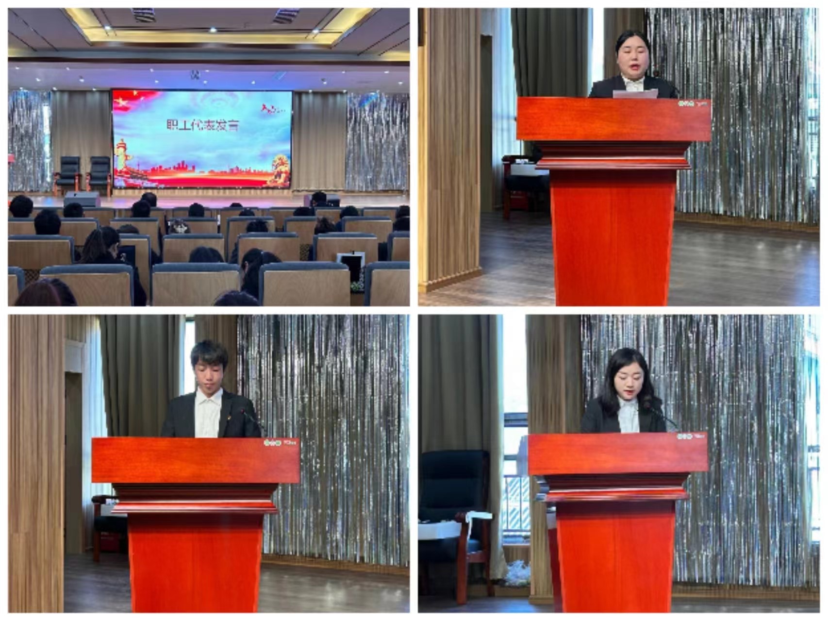 职工代表朱鸿龄、和龙晋、李云燕发言