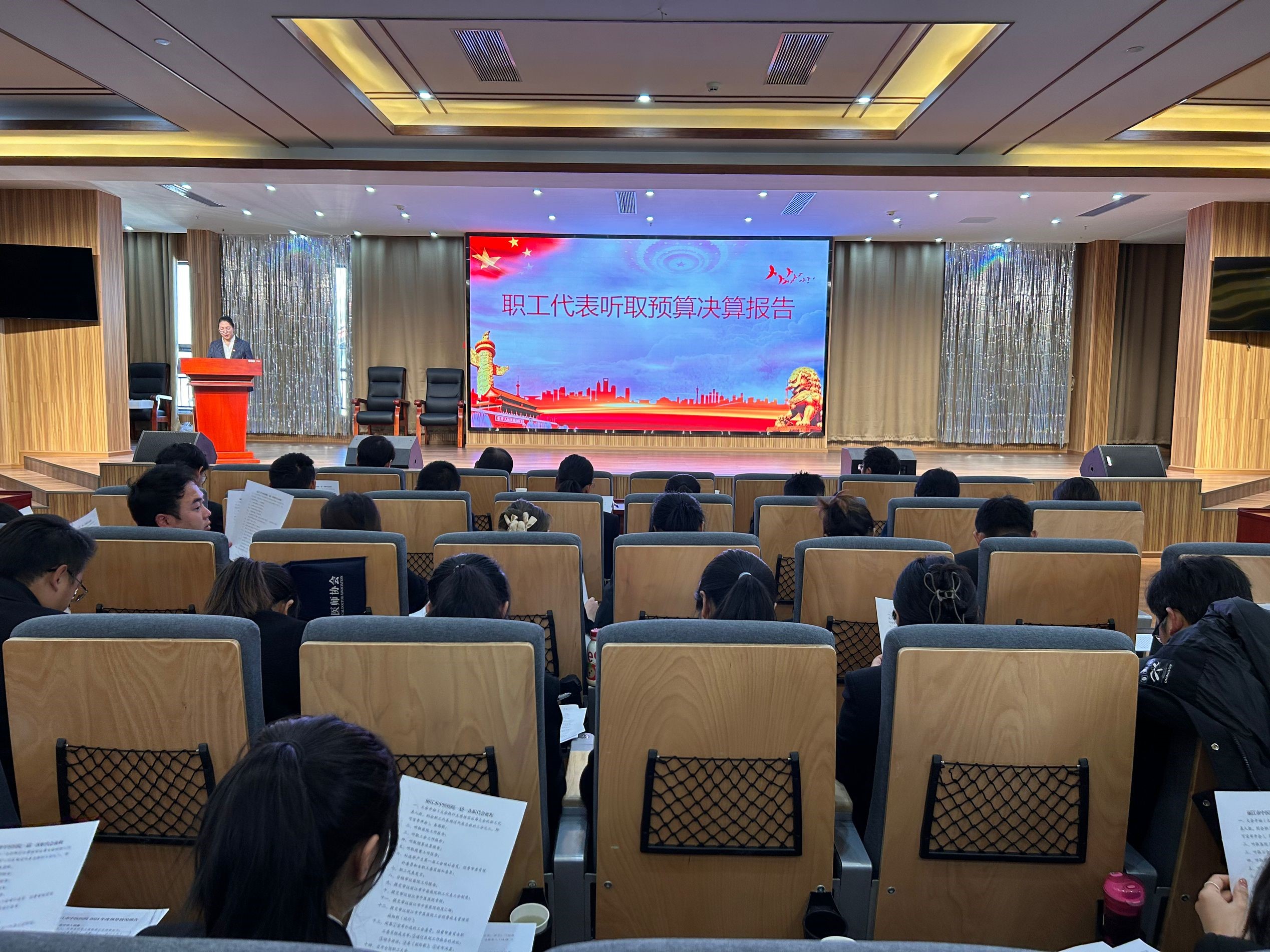 医院财务部负责人、职工代表和秋琳作预算决算报告