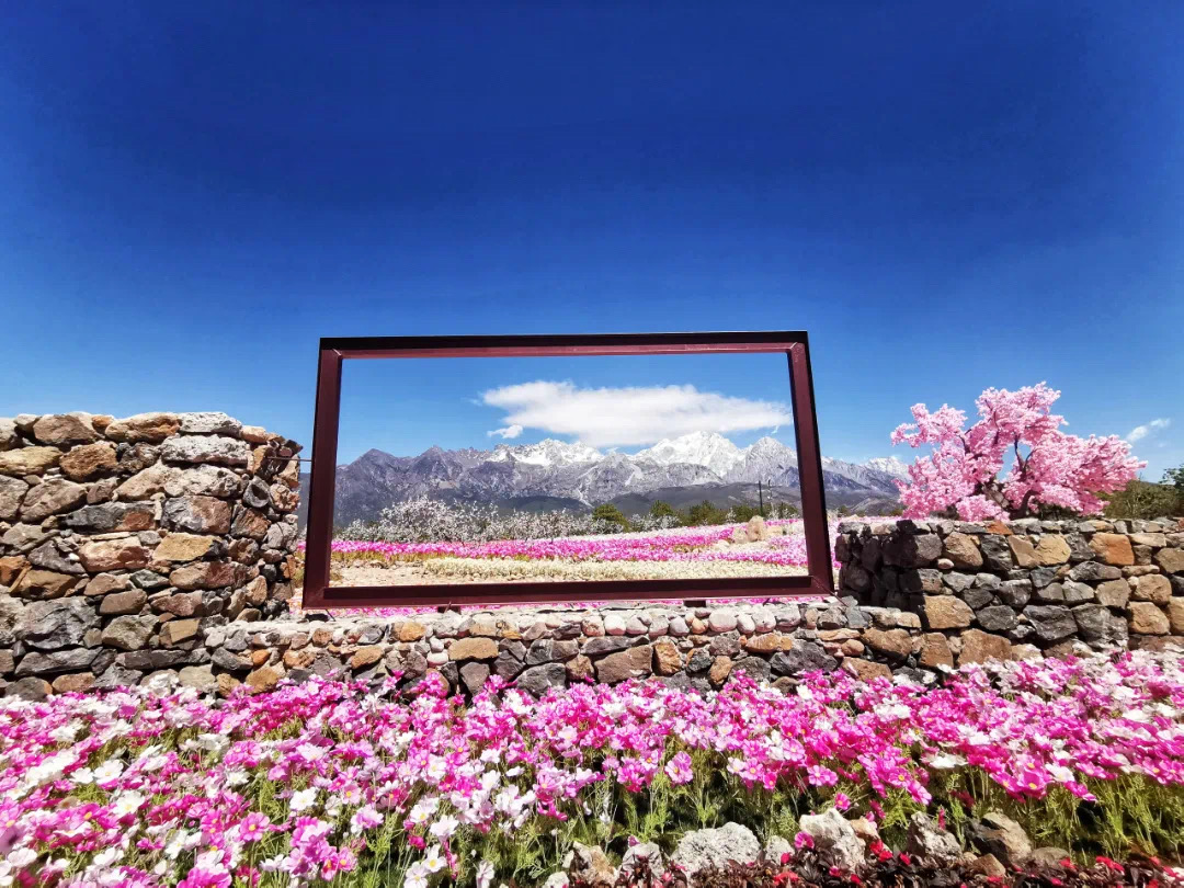 在热烈的山风中拥抱,执手漫步雪山的美景中,拿起手机,寻找最美的角度将雪山装进去,一次又一次按下快门,将所有的心情定格在玉龙,不管你来或不来,玉龙都在这里,美成了一幅画,默默期待2024能与你相遇。