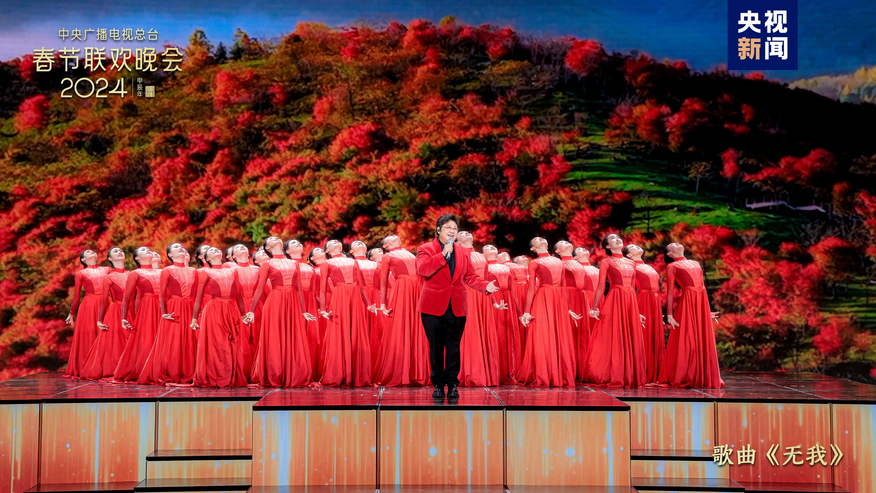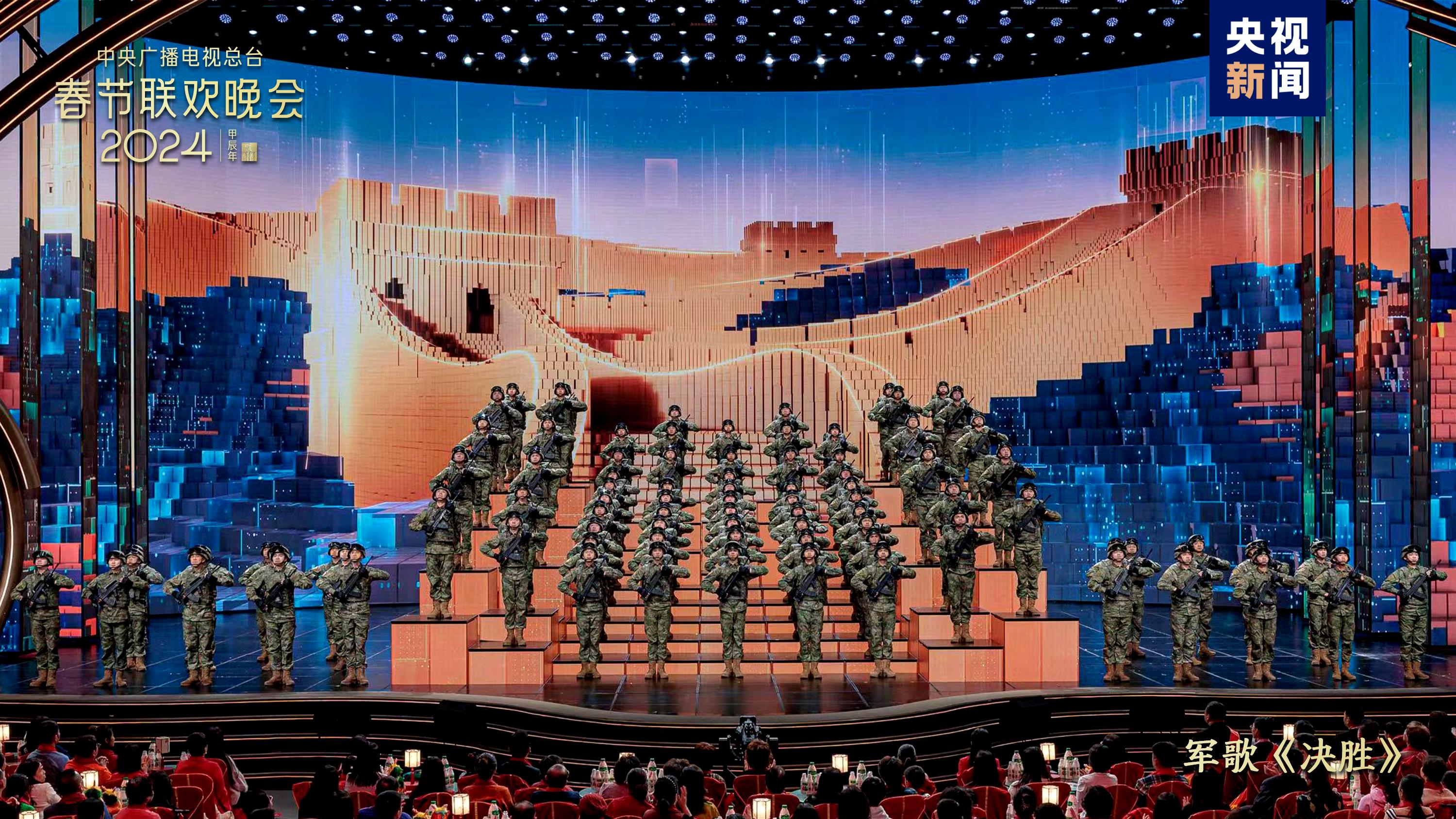 拼搏进取,振奋龙马精神。孙楠、张杰带来歌曲《龙》,高亢的歌声唤起中华儿女血脉中流淌的共同情感。军歌《决胜》以铿锵有力的誓言、刚健威武的气势,彰显新时代中国军人的热血英姿。韩红深情演唱《无我》,优美激越的旋律诠释出万水千山、情深意长的人民情怀。