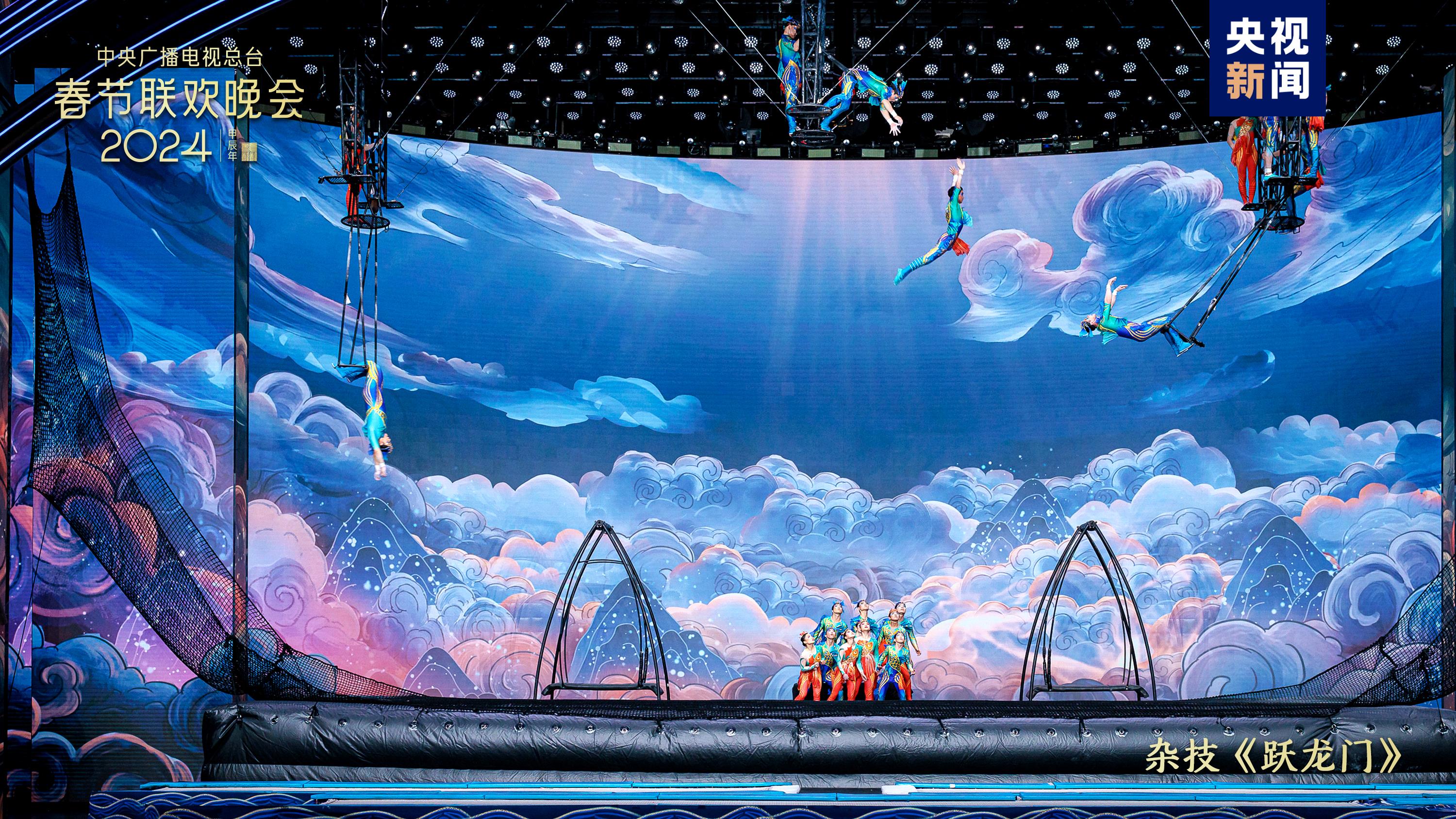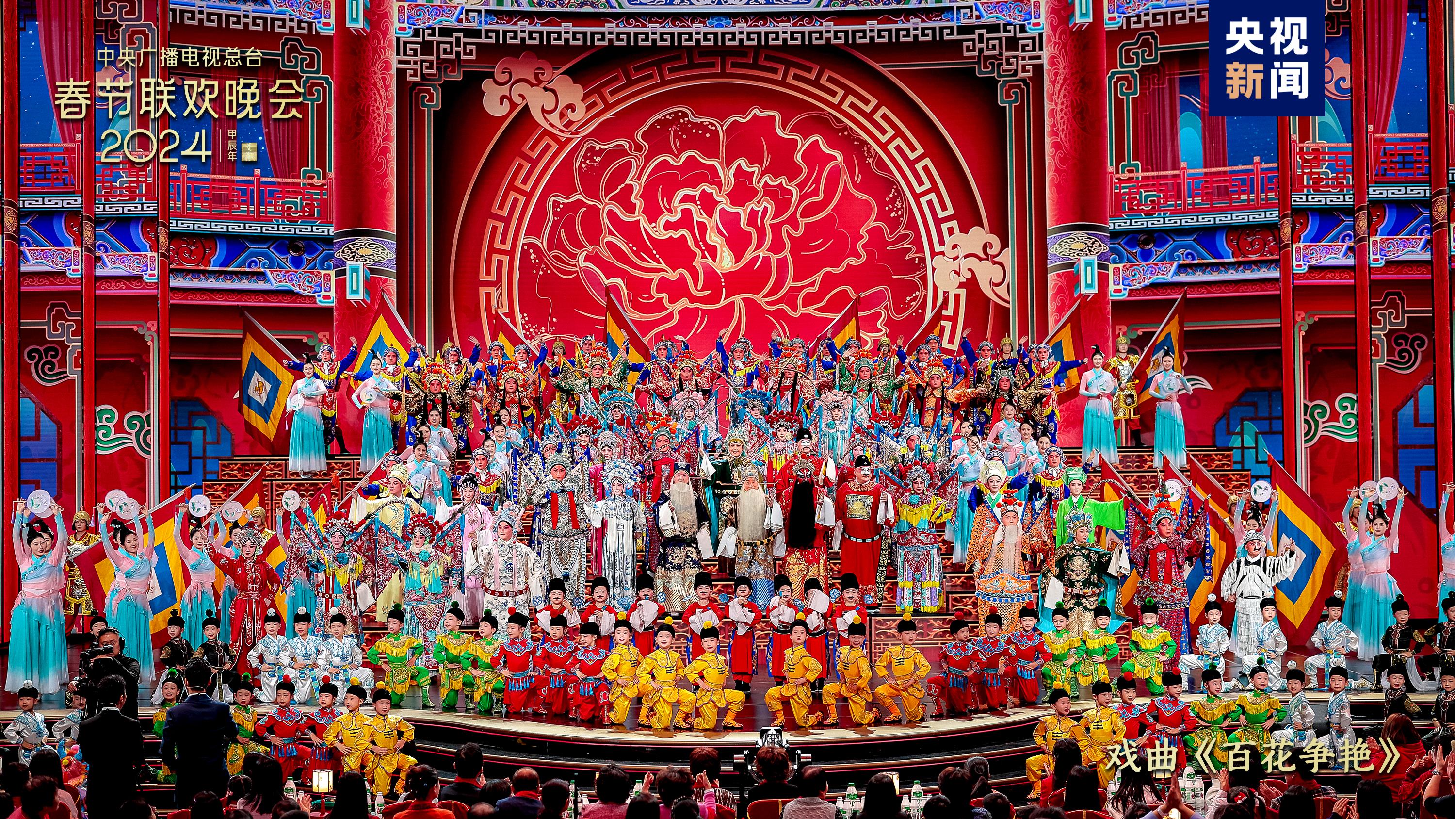 戏曲节目《百花争艳》中,老少中青群英会,演绎百万金戈铁马、千年恋爱传奇,国家级非物质文化遗产潮剧首次在总台春晚舞台绽放华彩。杂技《跃龙门》结合竞技体育项目“蹦床”和杂技“浪桥飞人”,表现出奋勇向前、更上层楼的干劲闯劲。陕西西安分会场全民齐诵诗词歌赋,恢宏大气的《山河诗长安》令人诗情澎湃、畅怀无限;多民族载歌载舞、共贺新春,新疆喀什分会场的《舞乐新疆》节奏欢快气氛热烈,展现石榴籽一样紧紧抱在一起的各民族一家亲。