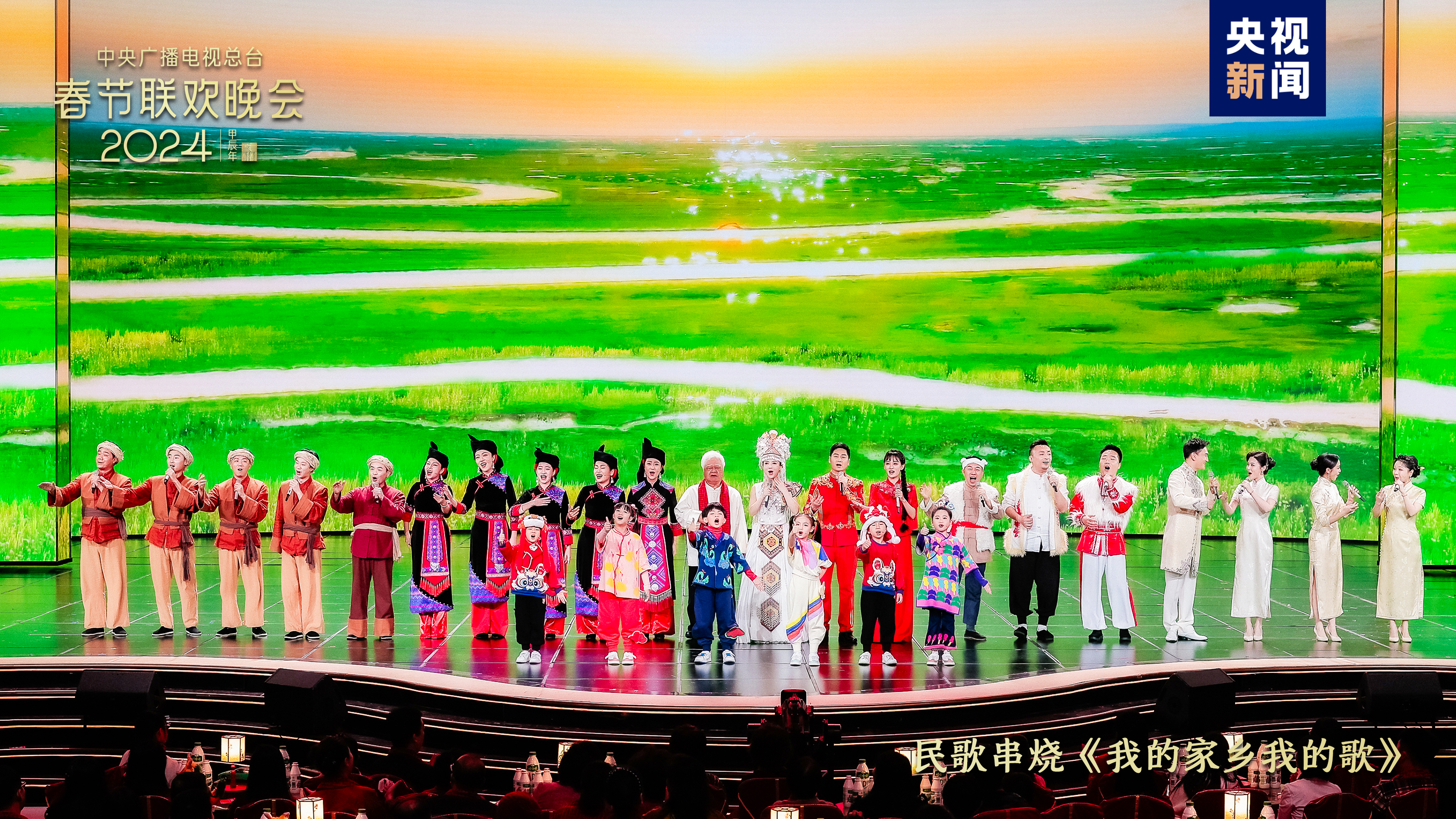 大江南北共欢腾。今年春晚北京主会场与辽宁沈阳、湖南长沙、陕西西安、新疆喀什四地分会场节目气韵贯通,国潮表演、歌舞说唱、器乐演奏等节目形式与地域特点巧妙融合,热潮一浪高过一浪。民歌串烧《我的家乡我的歌》集纳《太阳出来喜洋洋》《采茶舞曲》《山歌好比春江水》《谁不说俺家乡好》等众多经典民歌,耳熟能详的旋律描绘出山河锦绣的幸福年景。