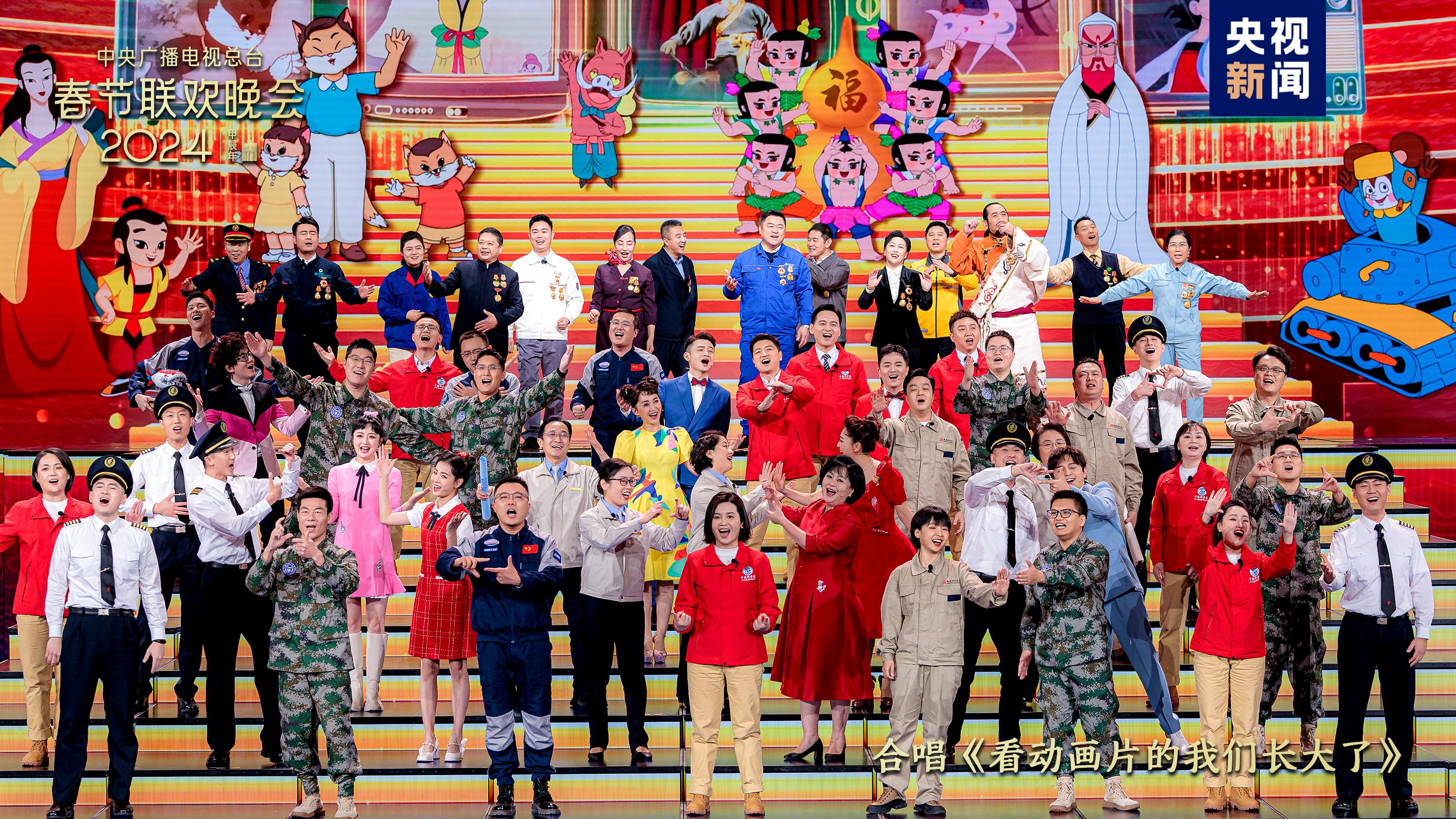 践行“以人民为中心”的创作导向,今年总台春晚邀请在各行业发光发热、可爱可亲的平凡人亮相舞台、入座观众席。真挚动人的百姓故事,奋斗进取的精神血脉,尽展神州大地的蓬勃生机。开场短片《我们的春晚》以电影化拍摄手法,记录勇敢追梦的百姓群像;全国五一劳动奖章获得者,神舟十七号航天员乘组以及飞行员、教师、科研人员、设计师等50余位行业代表一同合唱《看动画片的我们长大了》,在熟悉的童年旋律中串起成长的闪光轨迹。大国工匠、劳模代表等在辽宁沈阳分会场唱响“咱们都回家乡,铆足干劲儿闯一闯”,自信的笑容照亮人们对新一年的向往。