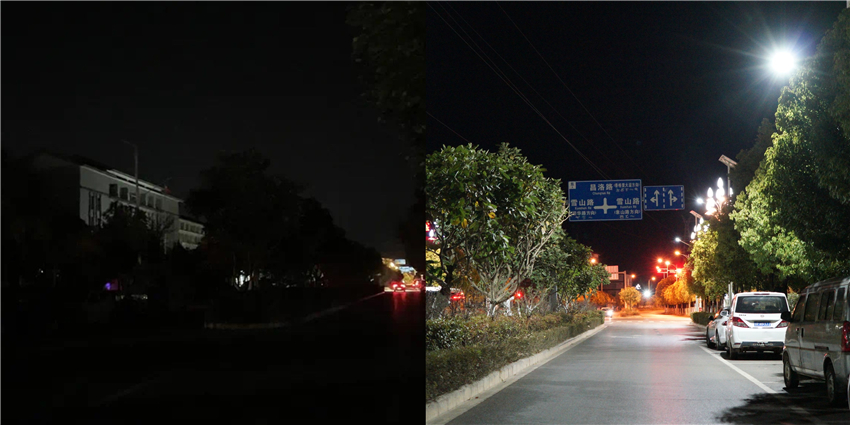 昌洛路西段路灯照明前后对比