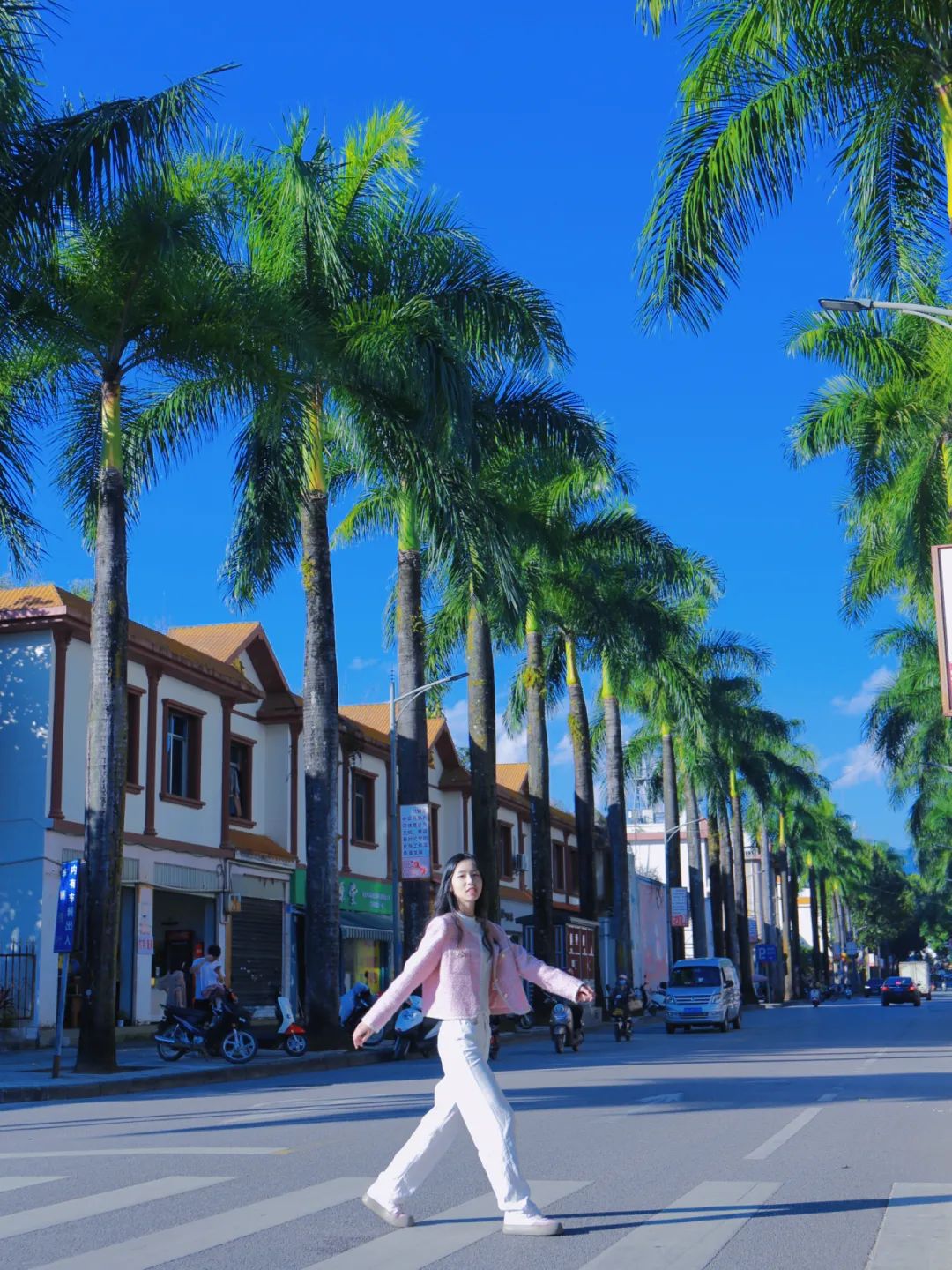阳光充足,棕榈树成排