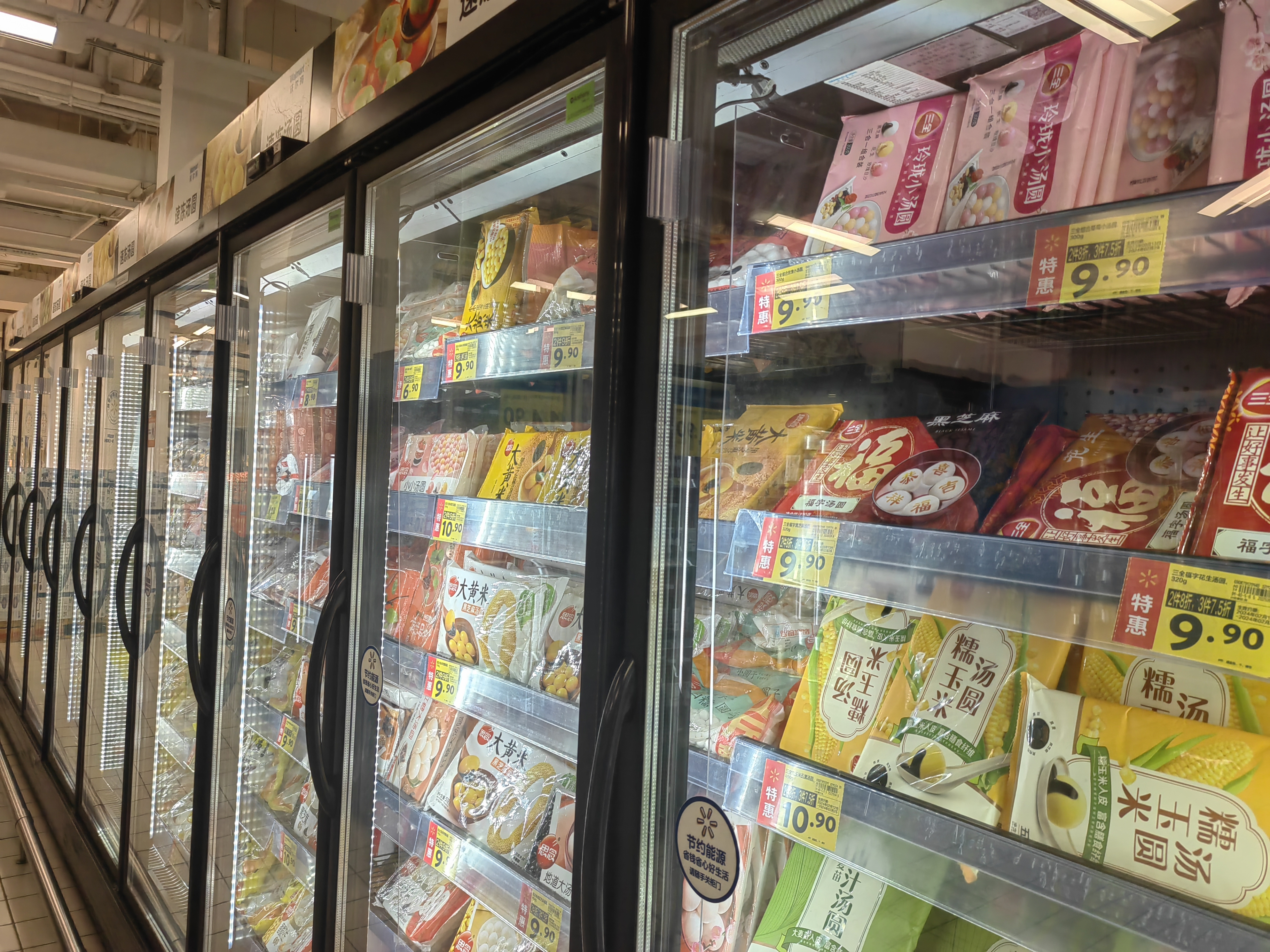 为了满足大家的“口腹之欲”,各家超市也是卯足了劲儿推出新品。沃尔玛购物广场丽江店生鲜部门主管陈丽梅介绍:“今年我们新推出了两款汤圆,一款是大黄米汤圆,另一款是柿柿如意汤圆。大黄米汤圆主打零蔗糖,比较适合禁糖及追求健康的人群;柿柿如意汤圆则是颜值与味道并存,萌趣Q弹,绝对能让你一口爱上。”