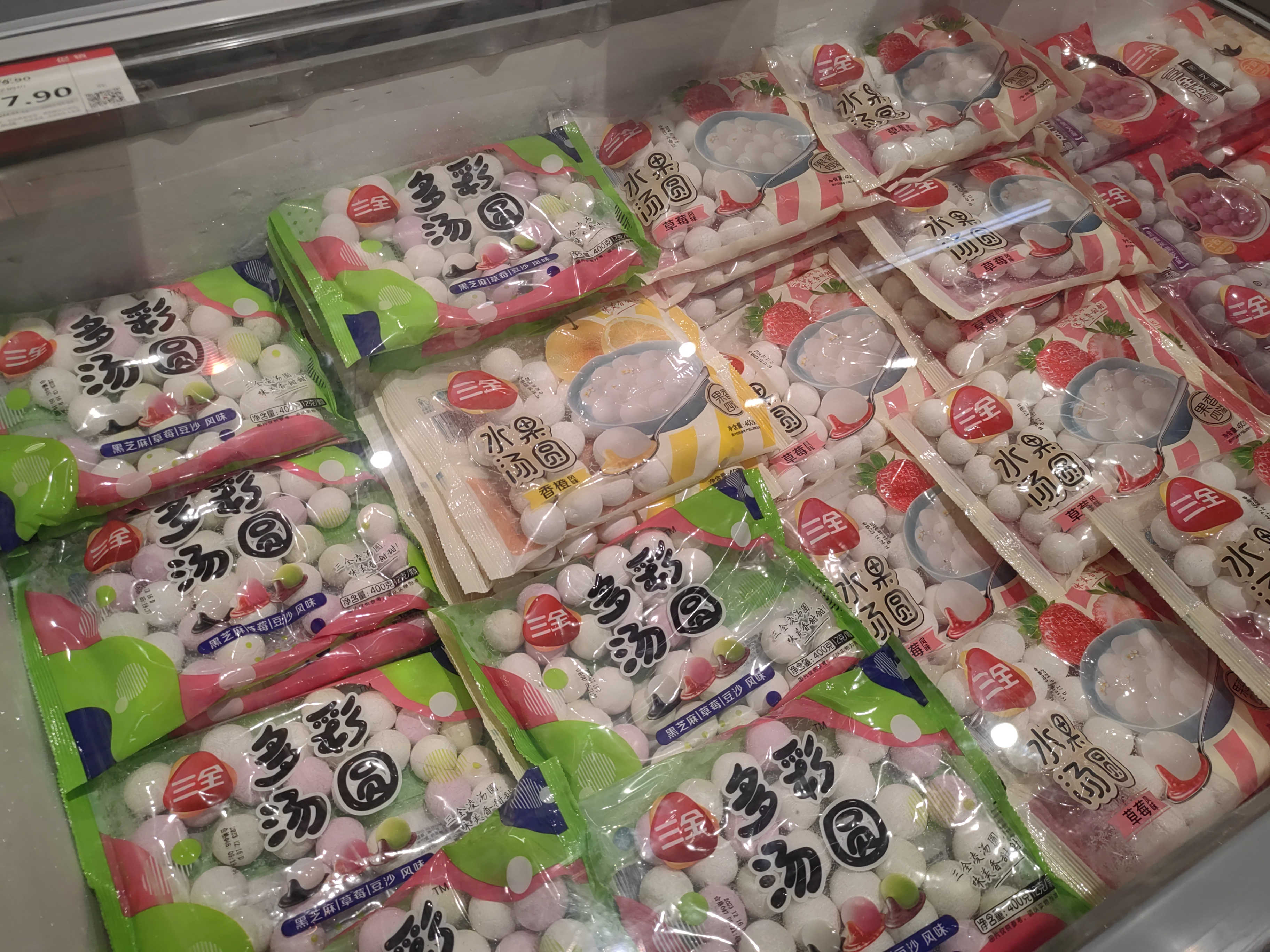 近日,记者走访了我市部分大型商超,发现汤圆已经成为了热销商品中的“香饽饽”。各家超市都设立了汤圆专区,各种口味的汤圆琳琅满目,简直让人挑花了眼。传统口味的黑芝麻、花生汤圆自然是少不了,近几年涌现出的青团汤圆、糯玉米汤圆、紫薯燕麦汤圆等新口味也势头正旺,静待挑选!