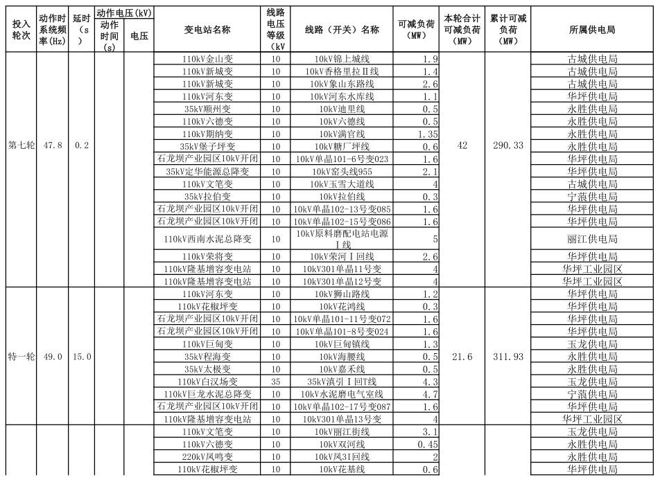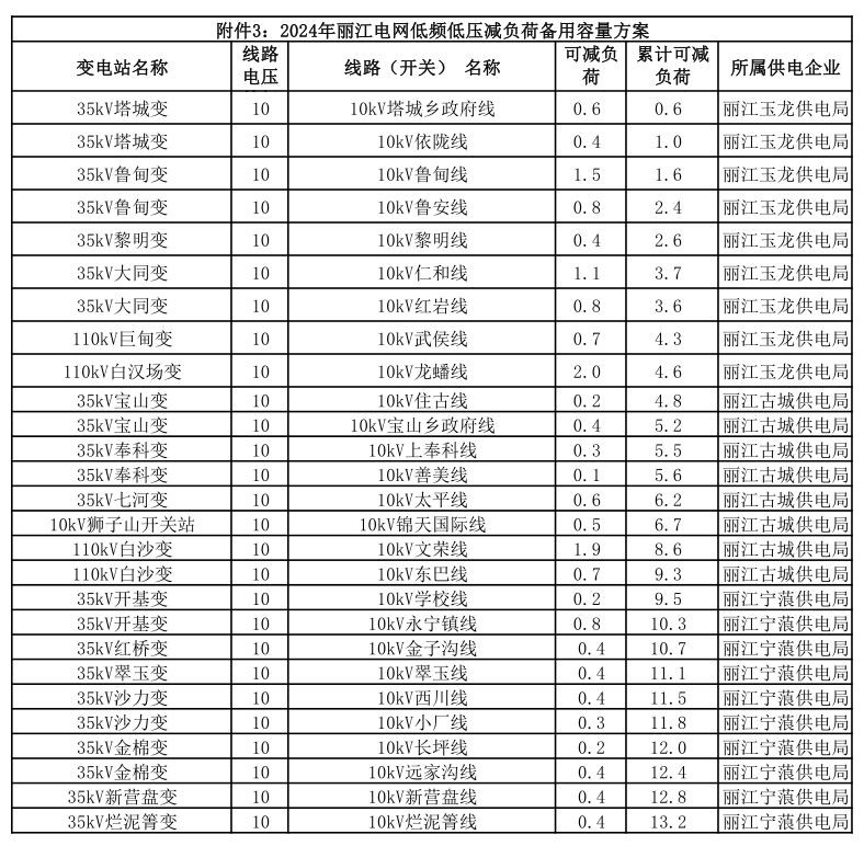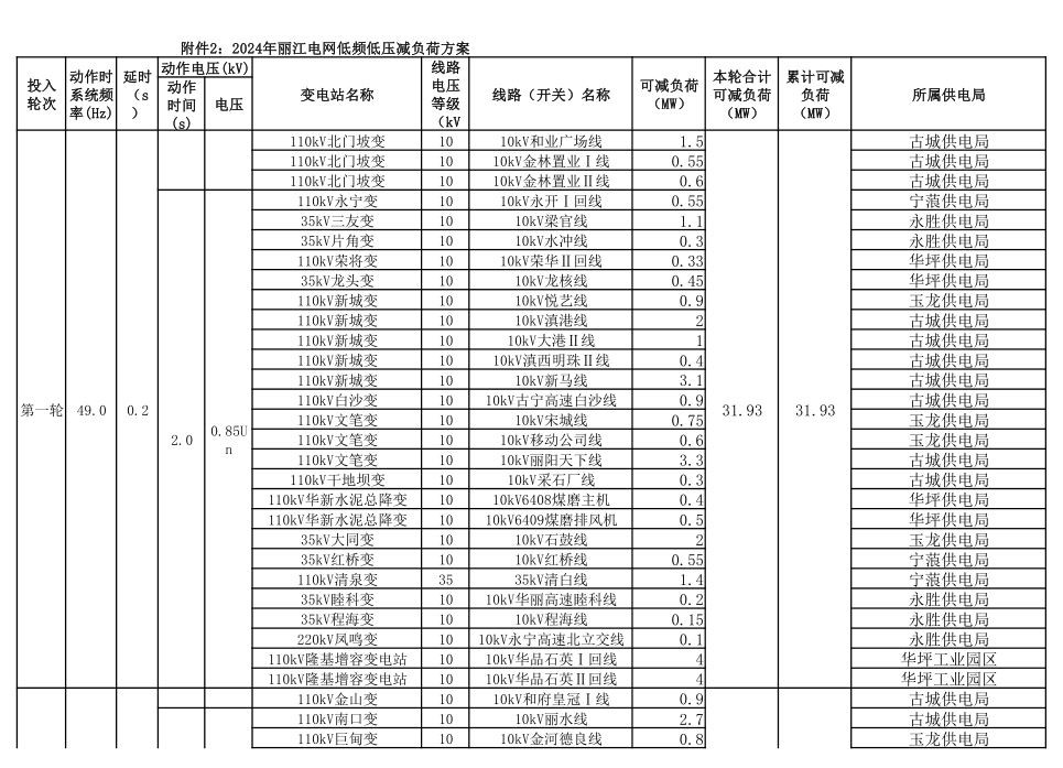 关于2024年丽江电网低频低压减负荷方案等4个方案的公示