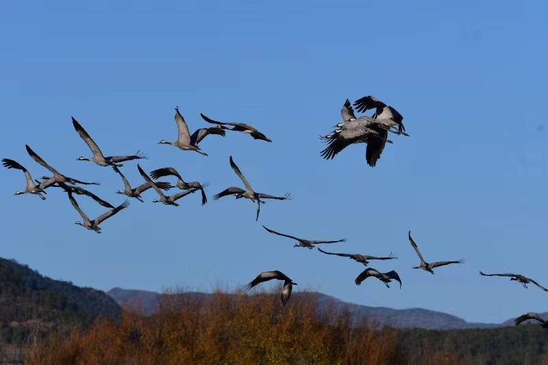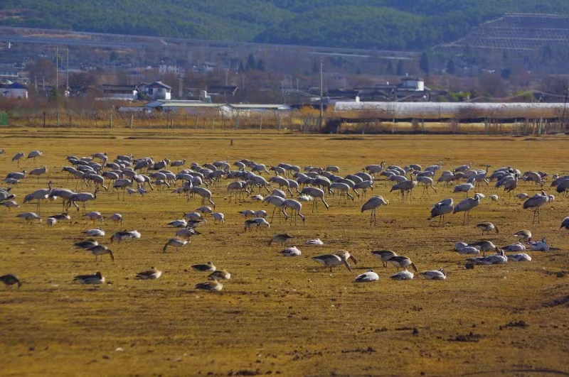 “我看到灰鹤觉得很吉祥,所以拍了下来,有‘瑞鹤呈祥,春和景明’的说法嘛。”喜爱在拉市湿地观鸟的市民杨先生为看到灰鹤群格外兴奋。
