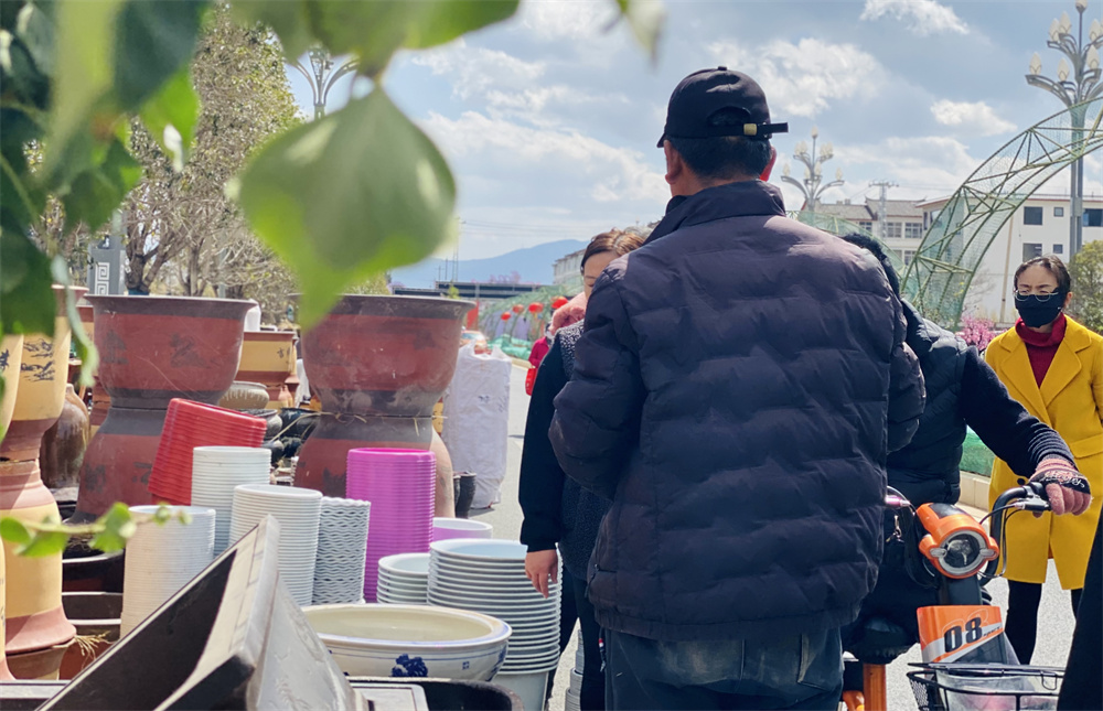 “买花盆的人比买花的多,大多数市民都是趁着棒棒会买几个花盆回去把家里那些旧的都换换。花盆价格有高有低,大家都能根据自己的需求选择。平时在店里也卖,但是棒棒会上人多,卖得就更好了。”摊主胡老板介绍道。