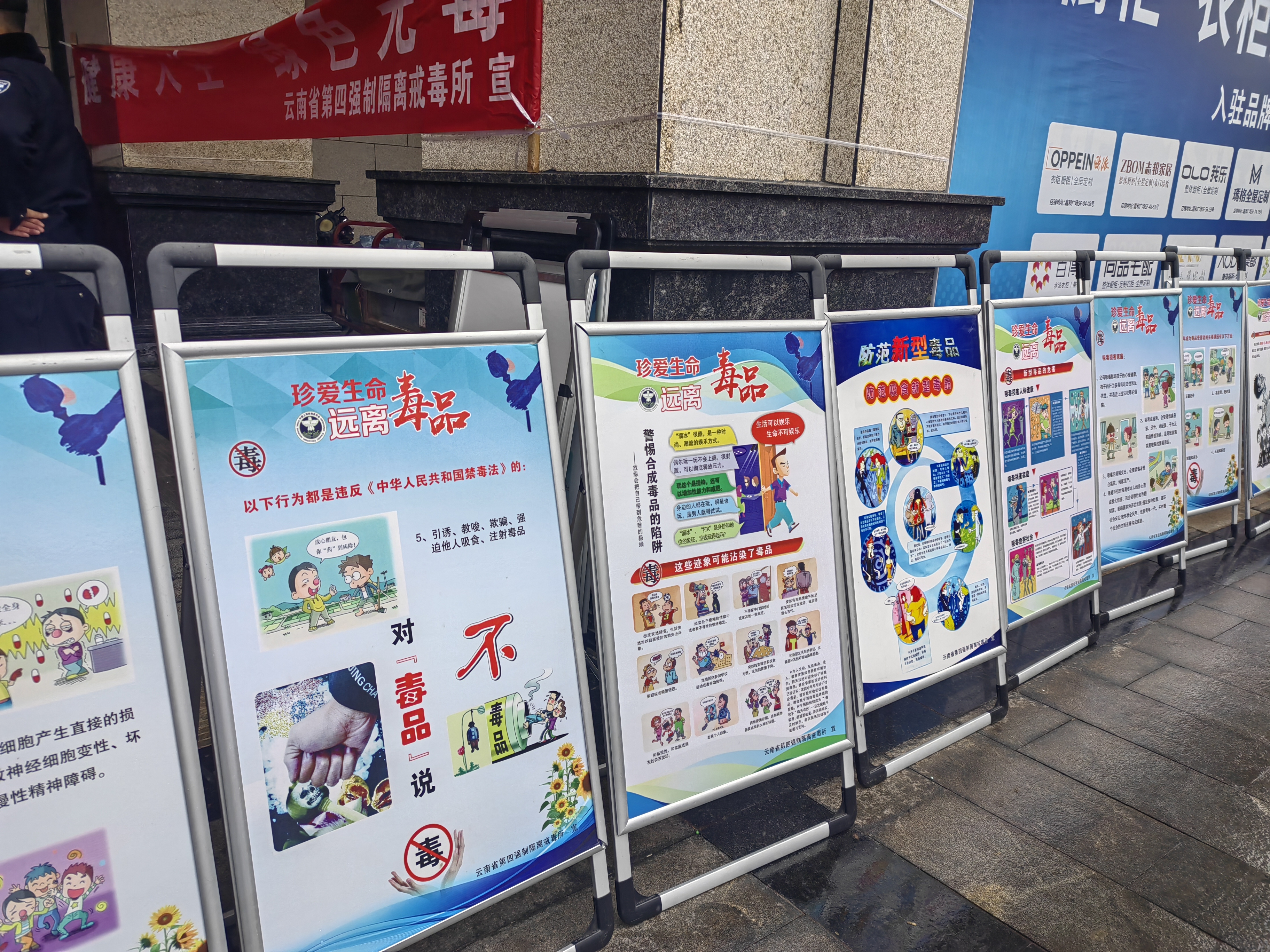 为了让大家更容易理解,警官们除了特地准备了一些仿真毒品外,还摆放了宣传展板、为过往市民发放宣传册,面对疑问,警官们也是一一解答。