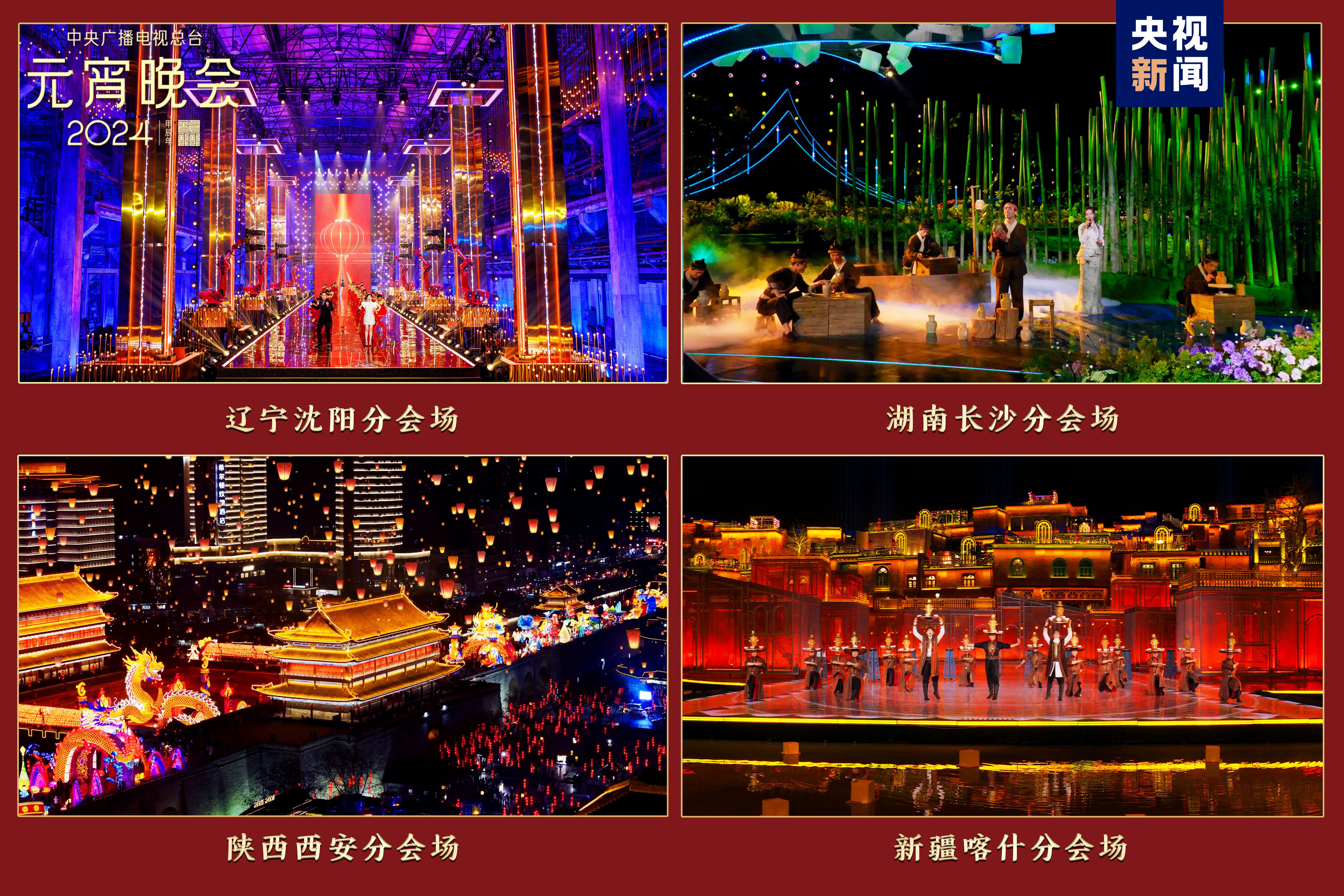 欢聚一堂,共赴喜庆团圆的联欢。今年总台春晚主会场和四地分会场的十三位主持人齐聚元宵晚会舞台,以趣味猜灯谜串联起整台晚会,为观众送上和美甜蜜的祝福。辽宁沈阳分会场带来表演《团圆暖冬》,浓郁的“东北味儿”带来北国之城的热闹欢腾;湖南长沙分会场以长沙出土的唐瓷诗文执壶创作《春生潇湘》,以曼妙春声唱万物春生,别具“湘式浪漫”;陕西西安分会场的《万象长安》,以一轮圆月作串联,重现流光溢彩的上元灯会;新疆喀什分会场继续欢歌起舞,在《爷爷的萨玛瓦尔》中展示美好生活。四地分会场张灯结彩、遥相辉映,共庆团圆。