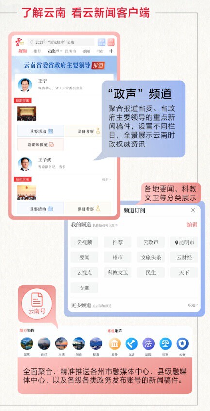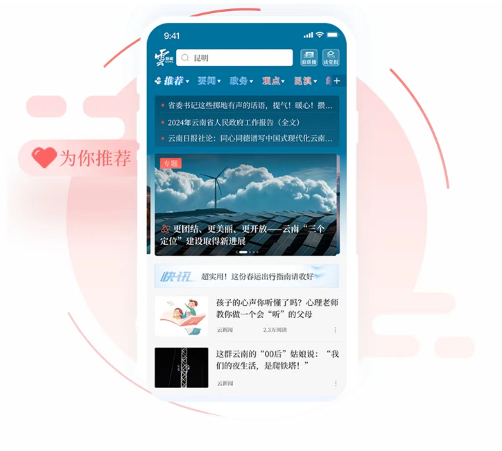 “主流思想、权威资讯、大众心声”是《云南日报》的办报理念;而今,“云新闻”客户端以“深耕云南、面向全国、辐射两亚、联接世界”为目标定位,以打造“中国面向南亚东南亚国际传播的第一窗口、南亚东南亚国家了解云南的第一窗口”为特色亮点,坚持“移动化、平台化、可视化、智慧化”发展路径,以“智能+”引领新型主流客户端建设,围绕“新闻+党务政务服务”核心优势,深入打造移动传播、服务创新、社会治理协作、经营拓展四大平台,努力打造成为具有世界眼光、中国情怀、云南味道、时代特征的省级重大新闻传播平台及其核心载体移动新闻客户端。这是与时代同频共振、坚持守正创新的行动体现,是忠实履行职责使命的精神传承,也是重整行装再出发的责任担当。