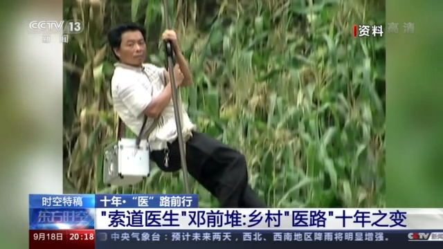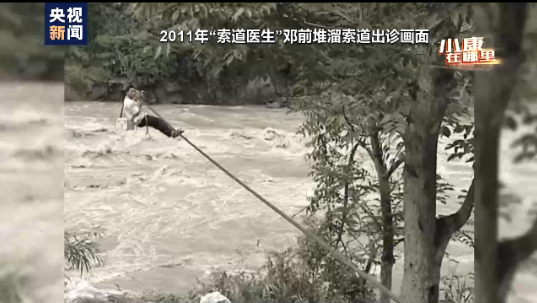 云南怒江州福贡县拉马底村乡村医生邓前堆坐溜索到怒江对岸出诊(新华社记者秦晴2011年2月20日摄)