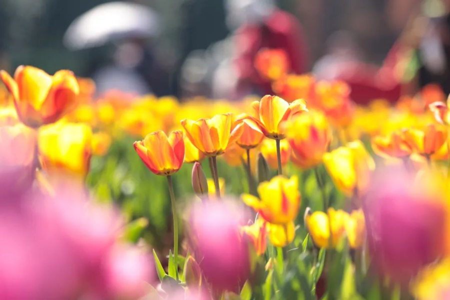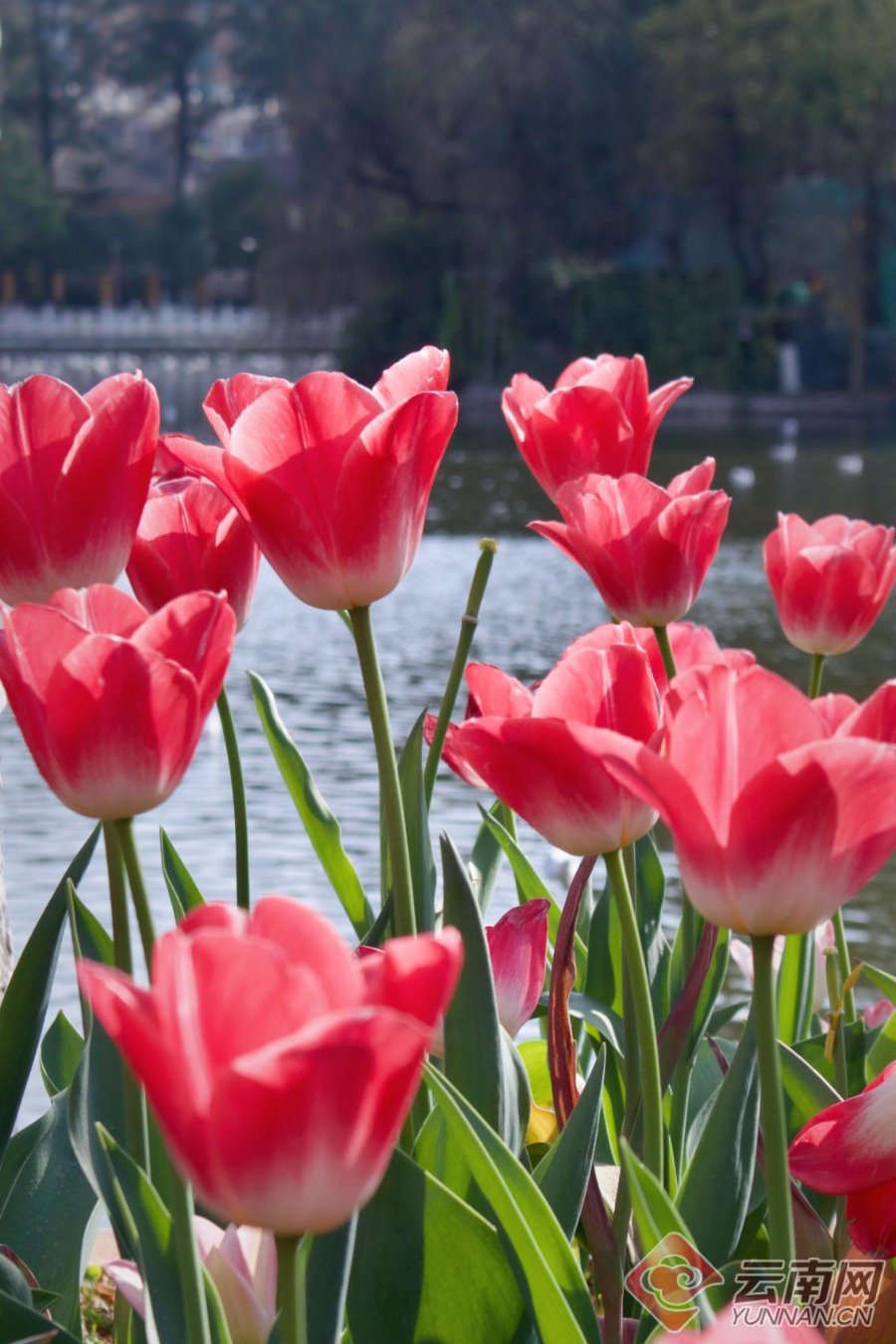 陈飞 摄 翠湖畔的粉红色郁金香 赏花地点 昆明捞渔河公园 昆明翠湖公园 最佳观赏期: 2月-4月