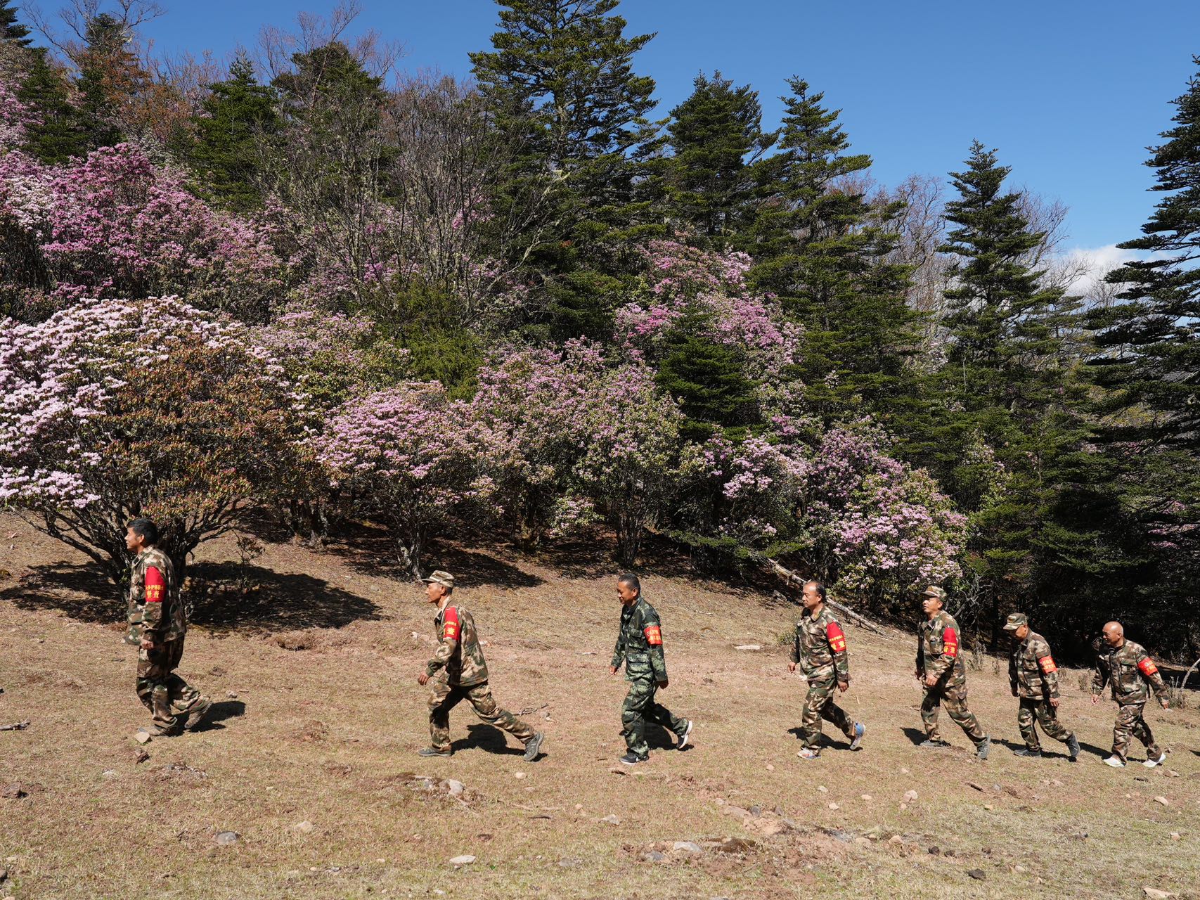 联合护林巡逻队坚持每天巡山。(钱磊 摄)